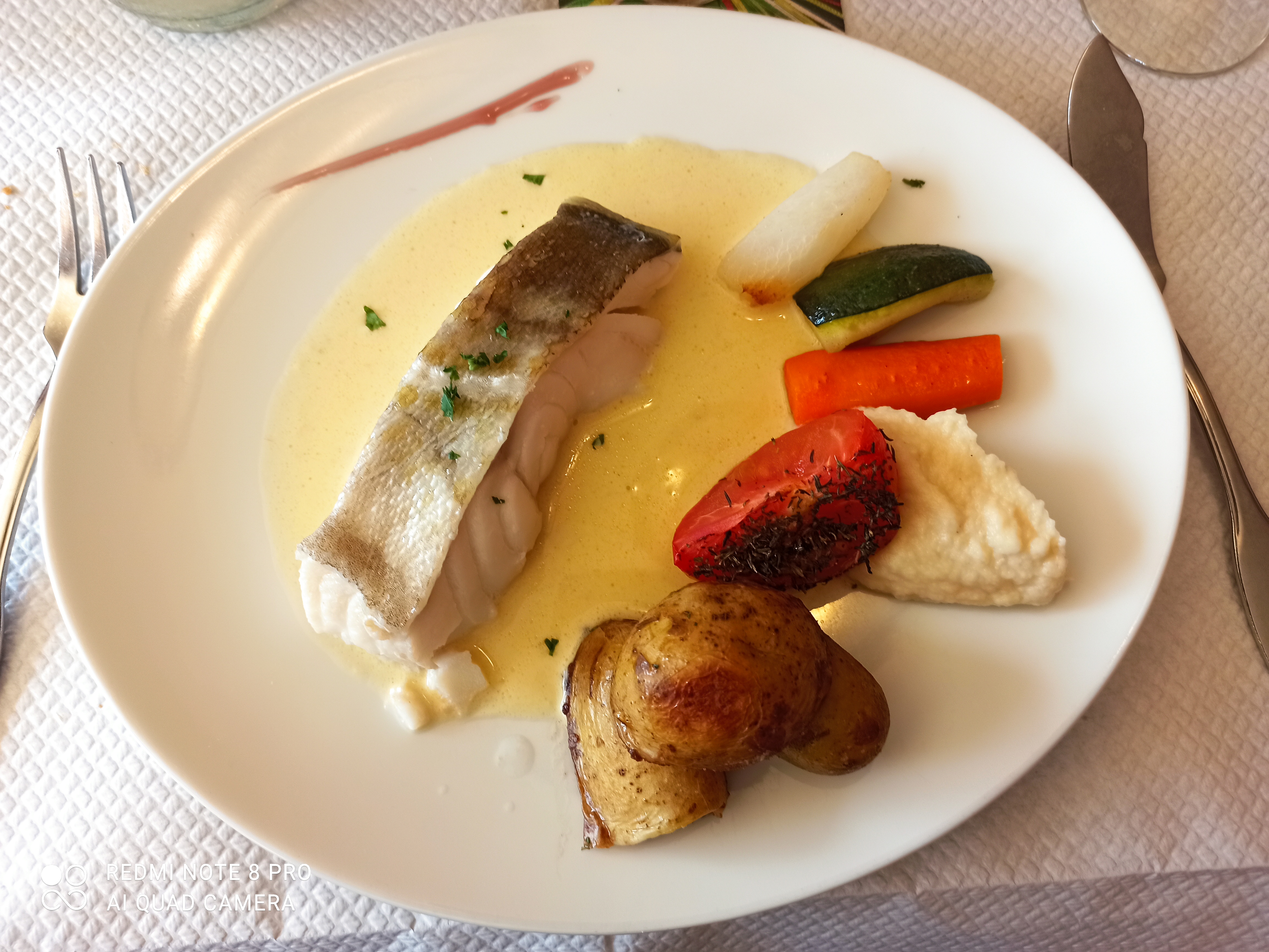 Très belle surprise… accueil sympa. Carte à l’ardoise. Profitons du poisson du jour. Cabillaud cuit parfaitement, juste nacré. Petite sauce hollandaise légère, des petits légumes al de te et un écrasé de PdT avec un point d’huile d’olive, parfait. Tarte au citron maison, pâte excellente, crémeux citron pas trop sucré, une petite boule de sorbet citron vert pour relever l’acidité. Excellent. Message à la patronne : faut arrêter la chantilly sur ce type de dessert, ça ne sert à rien, ça détourne l’attention et ça fait « pizzeria bas de gamme » restez donc dans ce que fait votre chef, rien de plus et c’est très bien. Ah oui, un petit muscadet bien sympa pour un joli déjeuner…