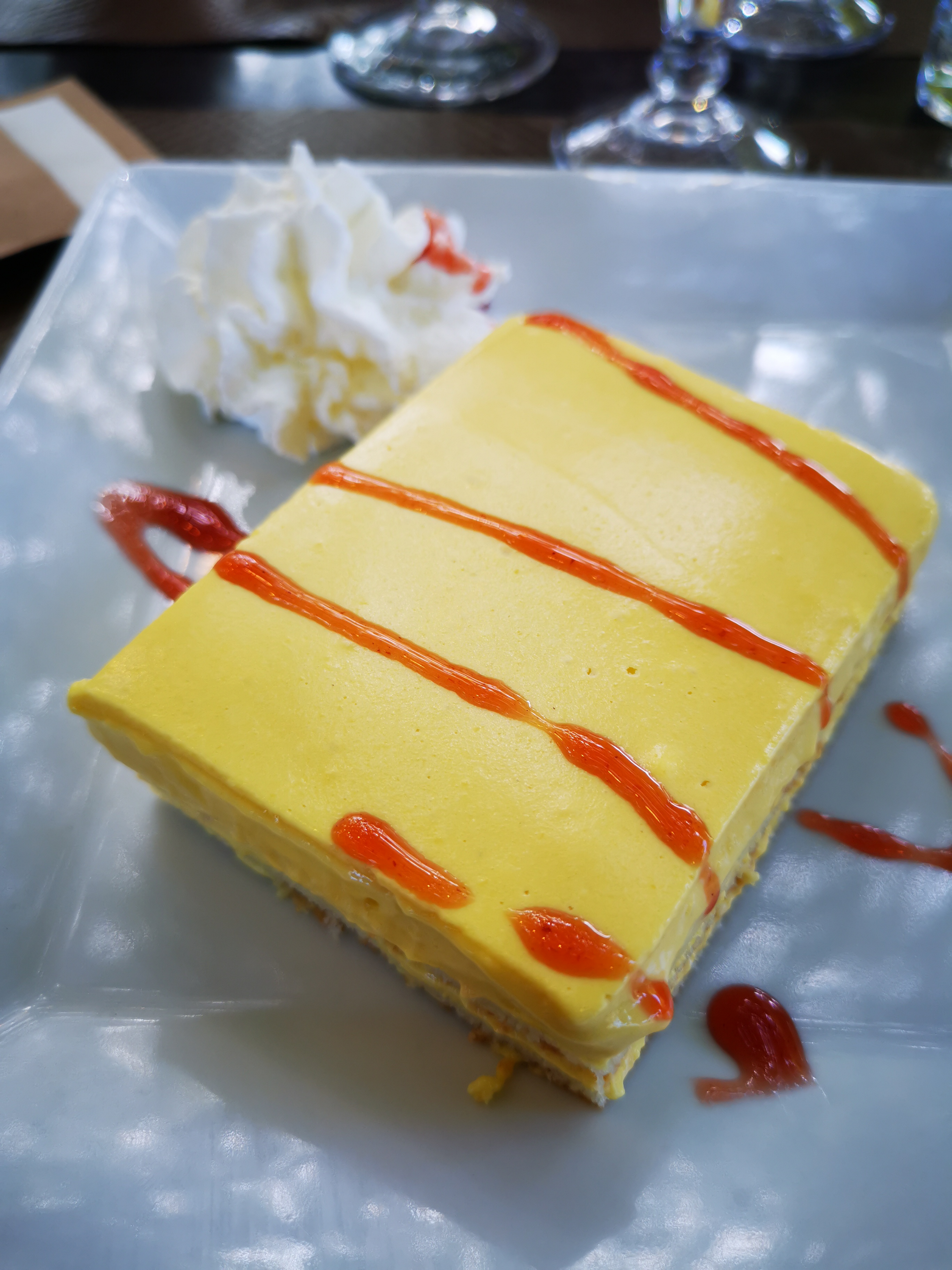 Repas en semaine midi :le plat principal bavette/frites/salade 👌👌👌, le dessert soit disant a la mangue 🤔🤔🤔je pense que ce n'est pas fait maison ou bien a revoir... Mais le service est rapide agréable et convivial...