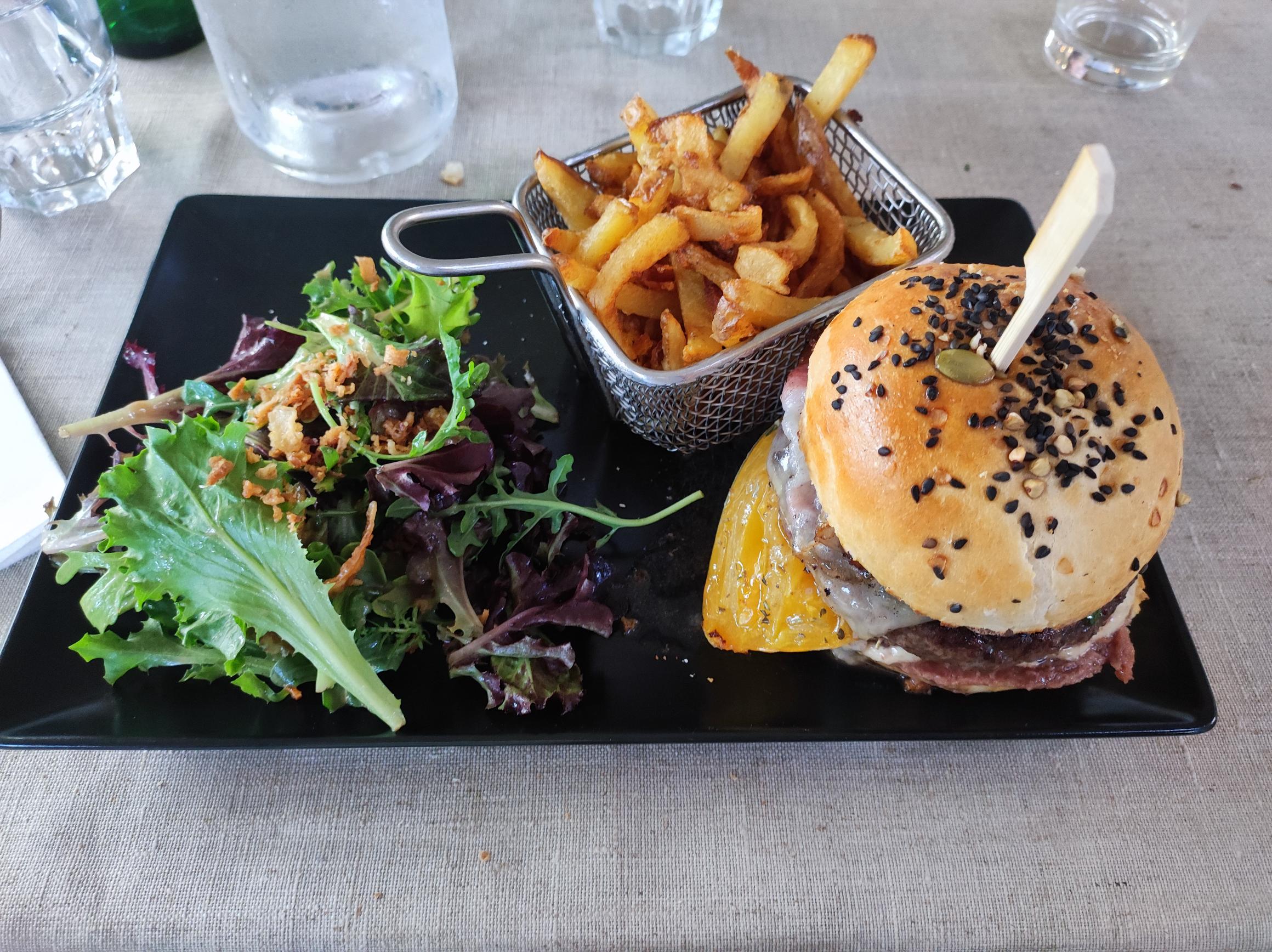 Malgré une heure tardive le personnel reste accueillant et se démène pour vous trouver une table pour 5 personnes en pleine saison estivale. Pas déçue car pour patienter un cocktail super bon et par la suite un Burger et dessert comme très bon. Une serveuse soucieuse de la bon déroulé de votre repas. Toujours un petit mot pour la table dont elle s'occupe. Ce qui est toujours appreciable... Très bonne ambiance tout en musique 🎶 Je conseille ! À faire.