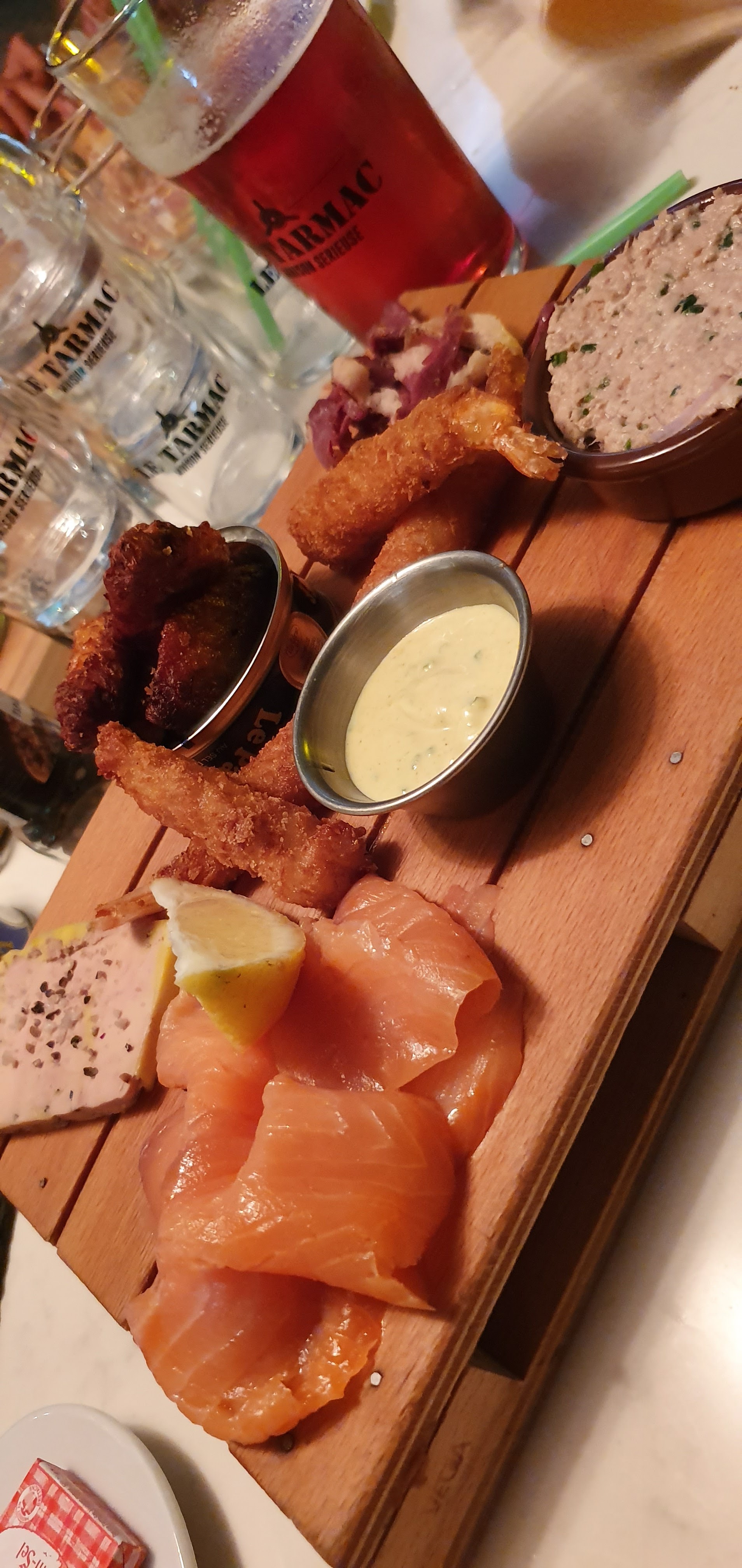 Je recommande le tarmac car tout est fait maison et c est vraiment un délice en bouche sans compter que le personnel est super sympa...un conseil aux internautes,n oubliez pas votre masque sinon vous ne rentrez pas se qui est normal et pour finir pensez à réserver 😉🐾