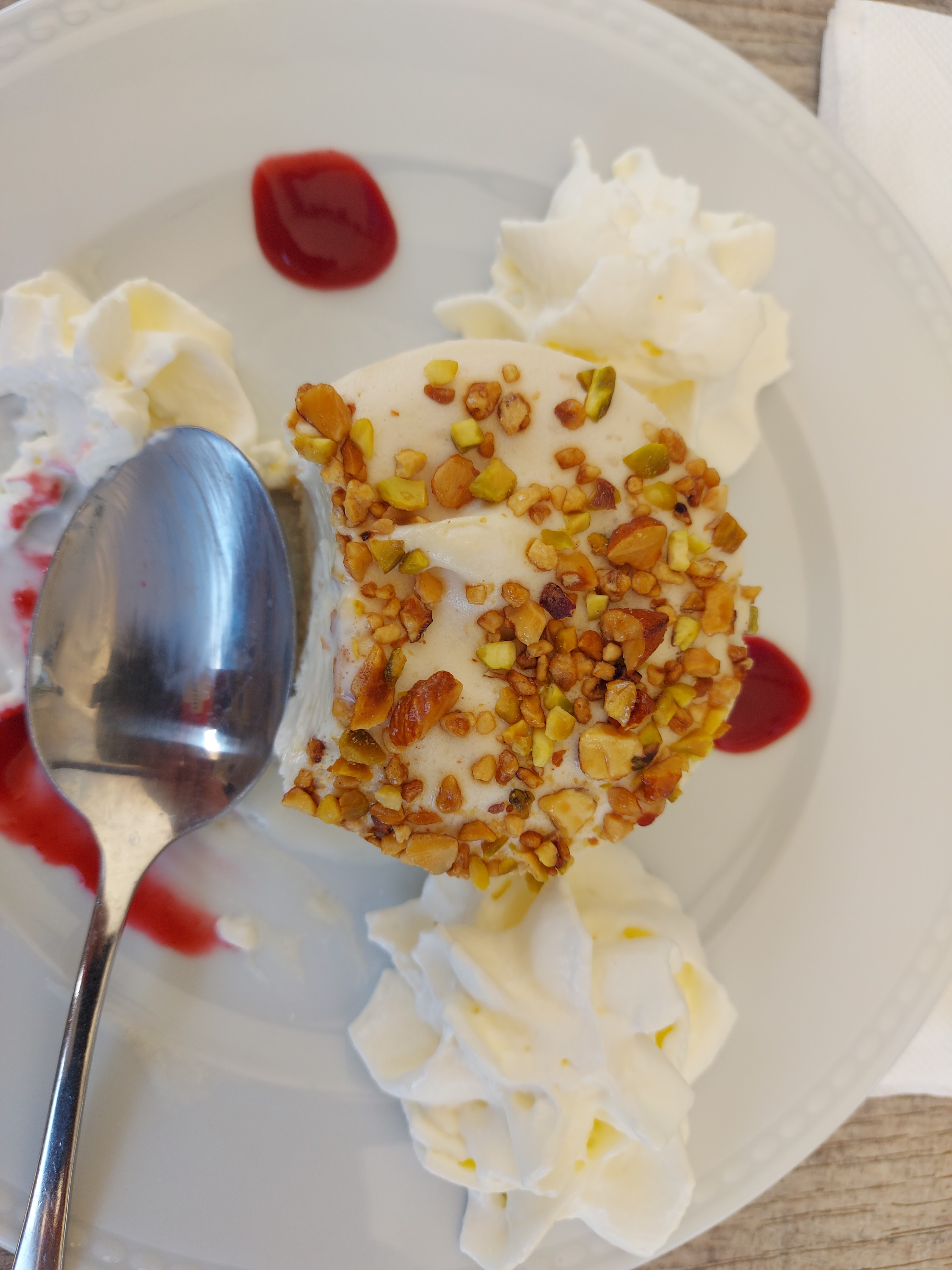 Bonne glace. le caramel est bon mais manque un peu le gout du beure salé. Pas de petit gateau avec le café. Acceuil au top.