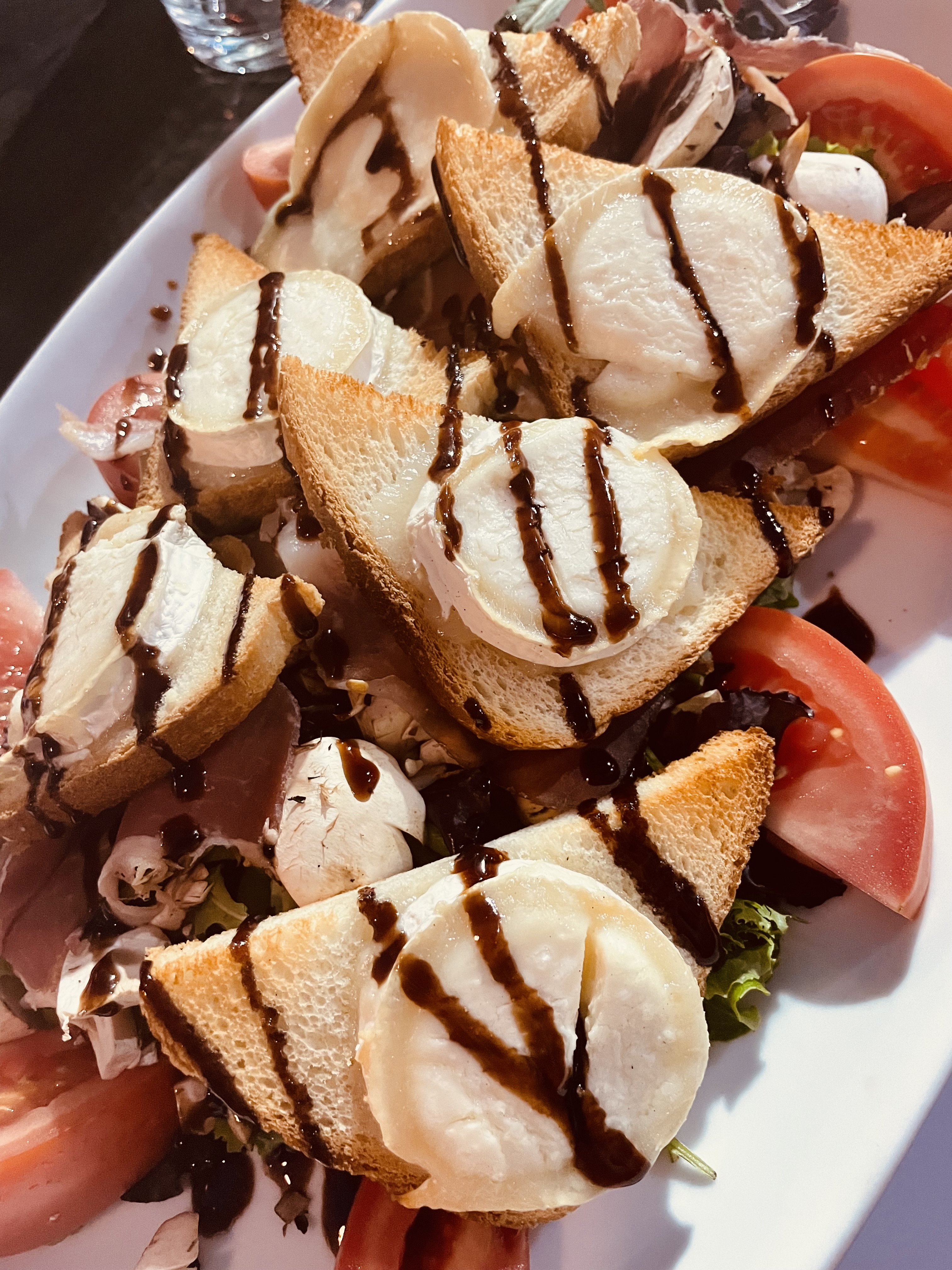 Salade de chèvre avec de la bûche 1er prix. Charcuterie pas terrible. Et beaucoup beaucoup de Salade verte. Personnel agréable