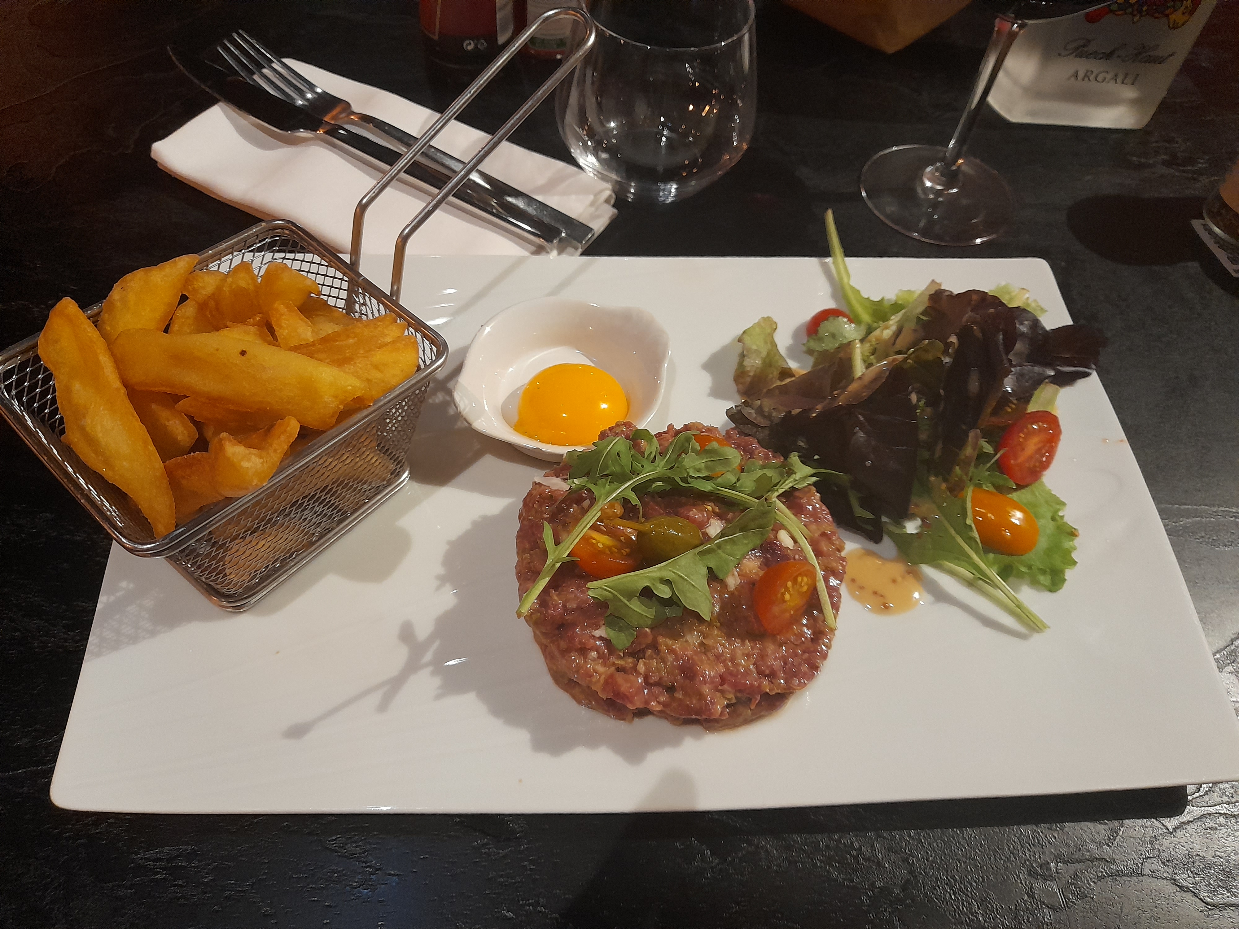 Dîner entre amis: très belle décoration plats bien présentés, serveurs au top, très professionnels, aimable rien à redire. Petits bémols accueil téléphonique moyen, quantité de frites et de salade 🥗 qui pourraient être augmentés au vu du prix. Concernant le dessert rien à redire le fondant au chocolat 🍫 accompagné de petits fruits, de chantilly, et de glace une véritable tueriiiiiiiiie. J'y retournerais avec plaisir en espérant voir une quantité augmenté sur le plat principal.