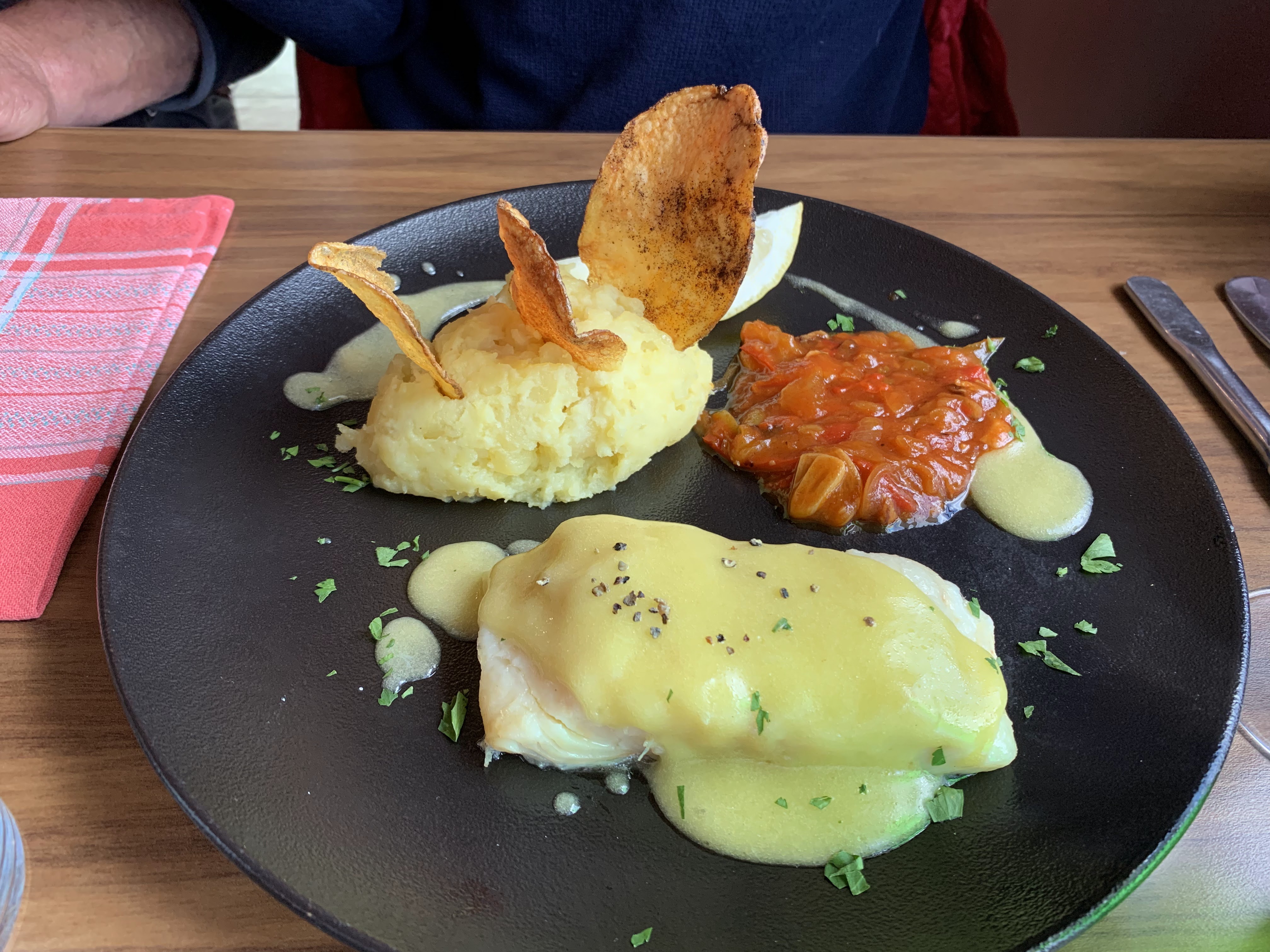 Déjeuner ensoleillé en terrasse au bord de la Nivelle. Accueil souriant et service rapide. Plats très bons et copieux