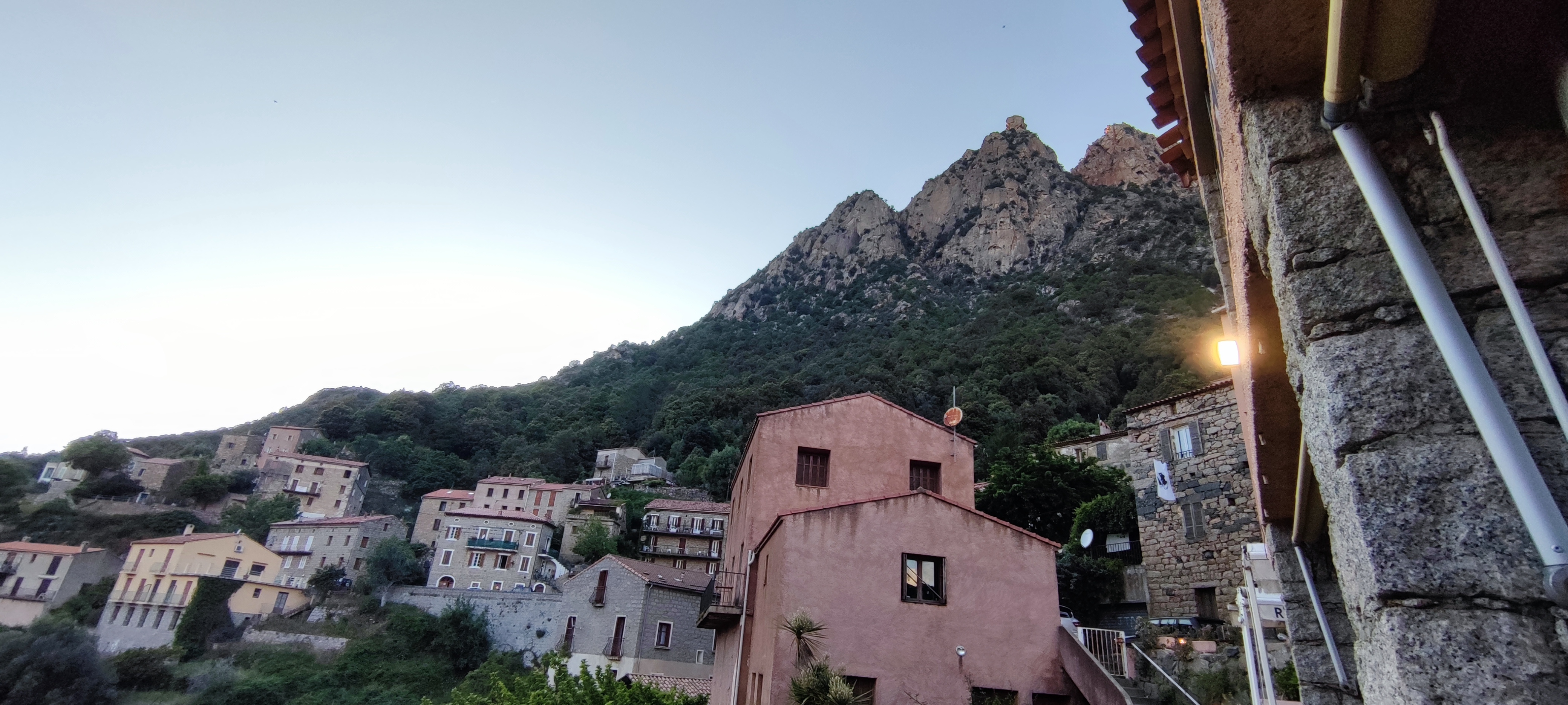 Super accueil. Repas du soir sur la terrasse avec vue sur le Capo d Orto. Super menu le soir. Entrées corses copieuses . Mention speciale pour le porcelet au four et le sauté d agneau. Beignets de courgettes au top. Fromages a volonté avec confiture maison. Tiramisu a la châtaigne et gateau du chef excellents. Organise des soirées chants Corse. Prix très corrects.