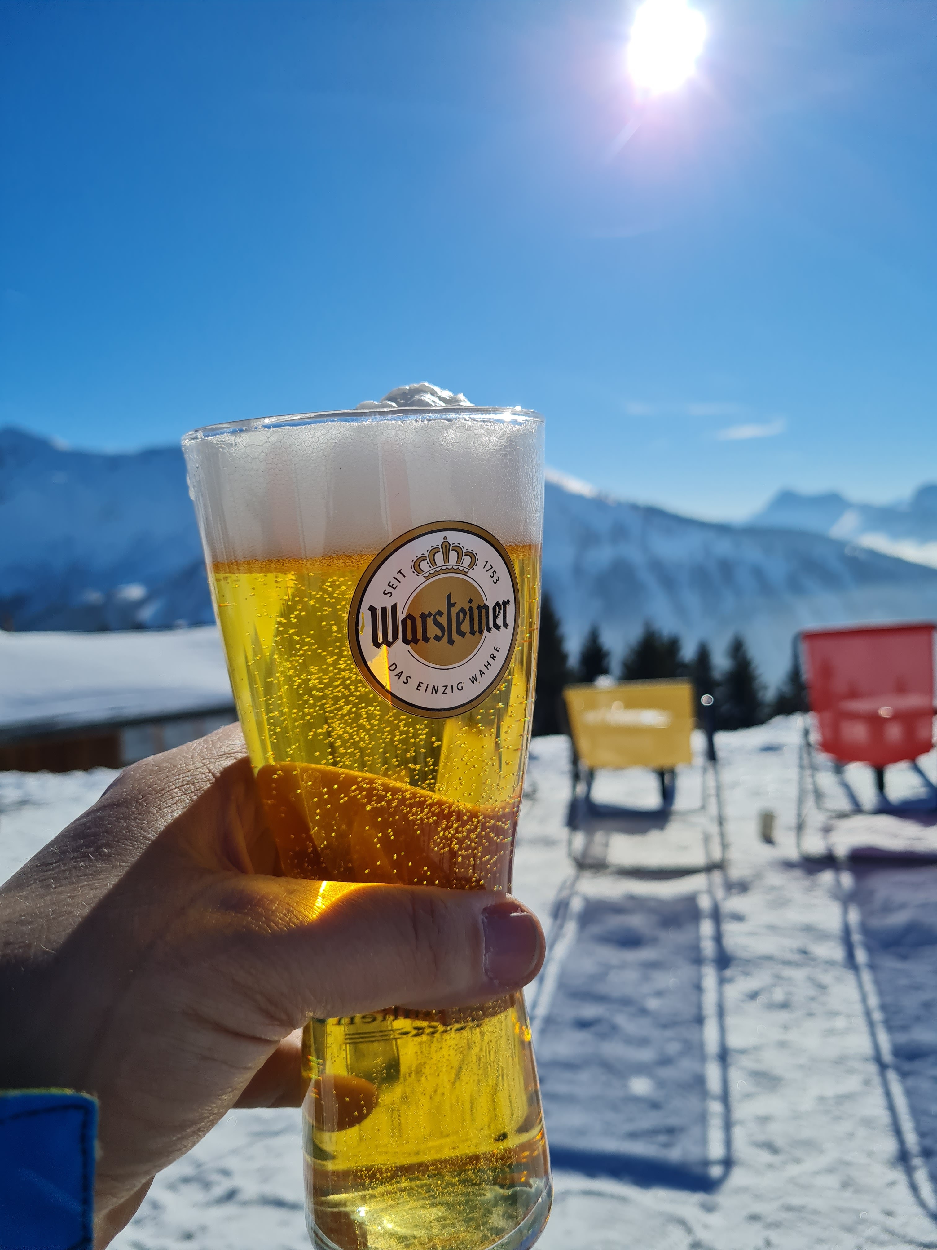 Déjeuner avec vue. Soupe à l'oignon française, pizza et deux coca. Nous sommes repartis heureux, rassasiés et reposés, prêts à profiter encore du ski. Personnel sympathique et cette vue 😍