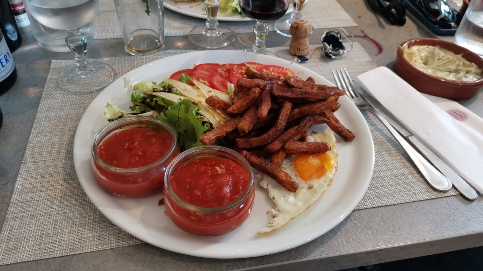 DÉPLORABLE.. restaurant choisi grâce aux avis dont on peut douter de la sincérité… Nous avons eu droit à des frites réchauffées et la saucisse devait aussi l être car avec une cuisine attenante à la salle et donc visible seul l œuf au plat a fait l objet d une cuisson .. Bien dommage … il faudra vous ressaisir et être un peu plus sérieux