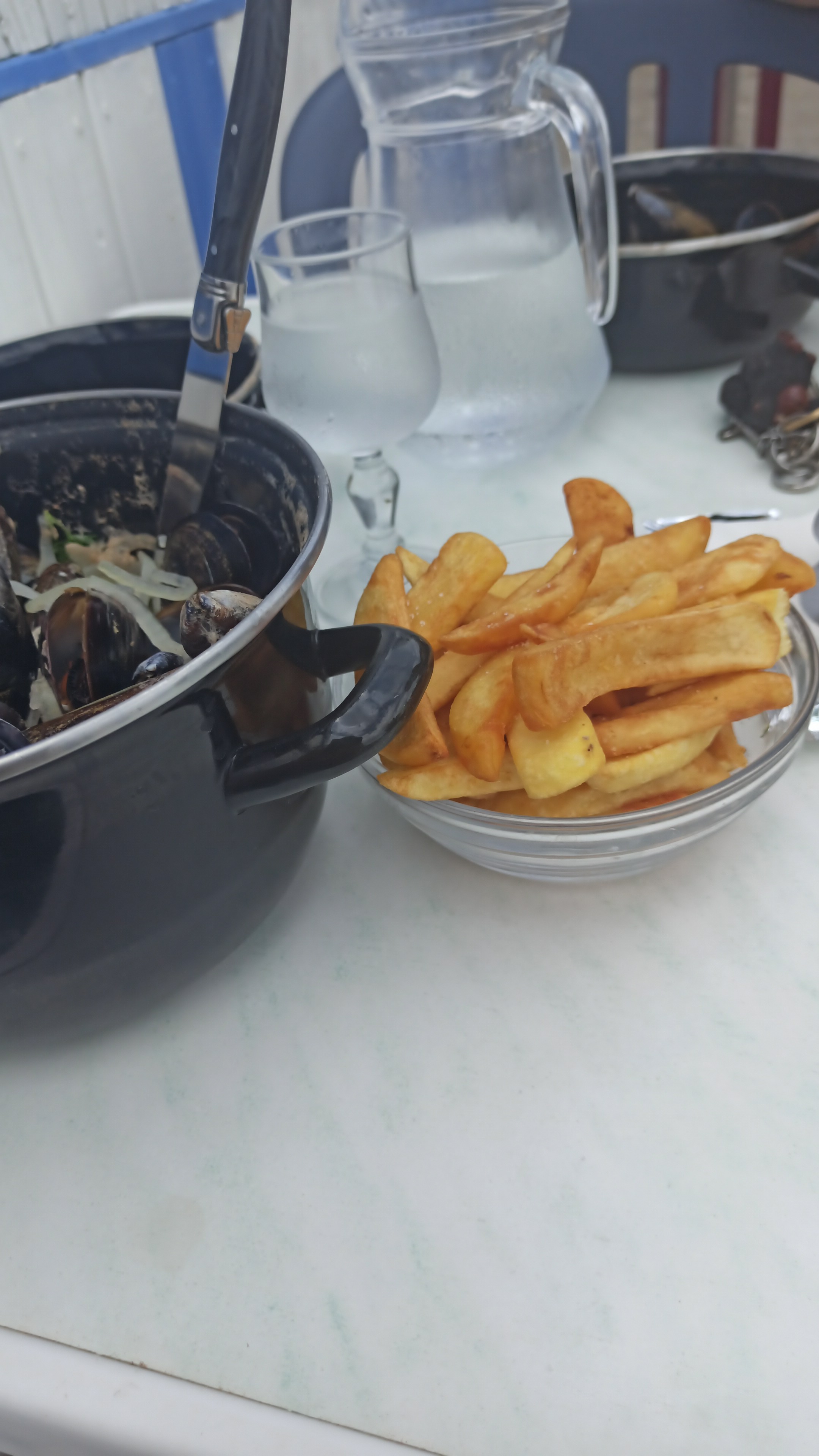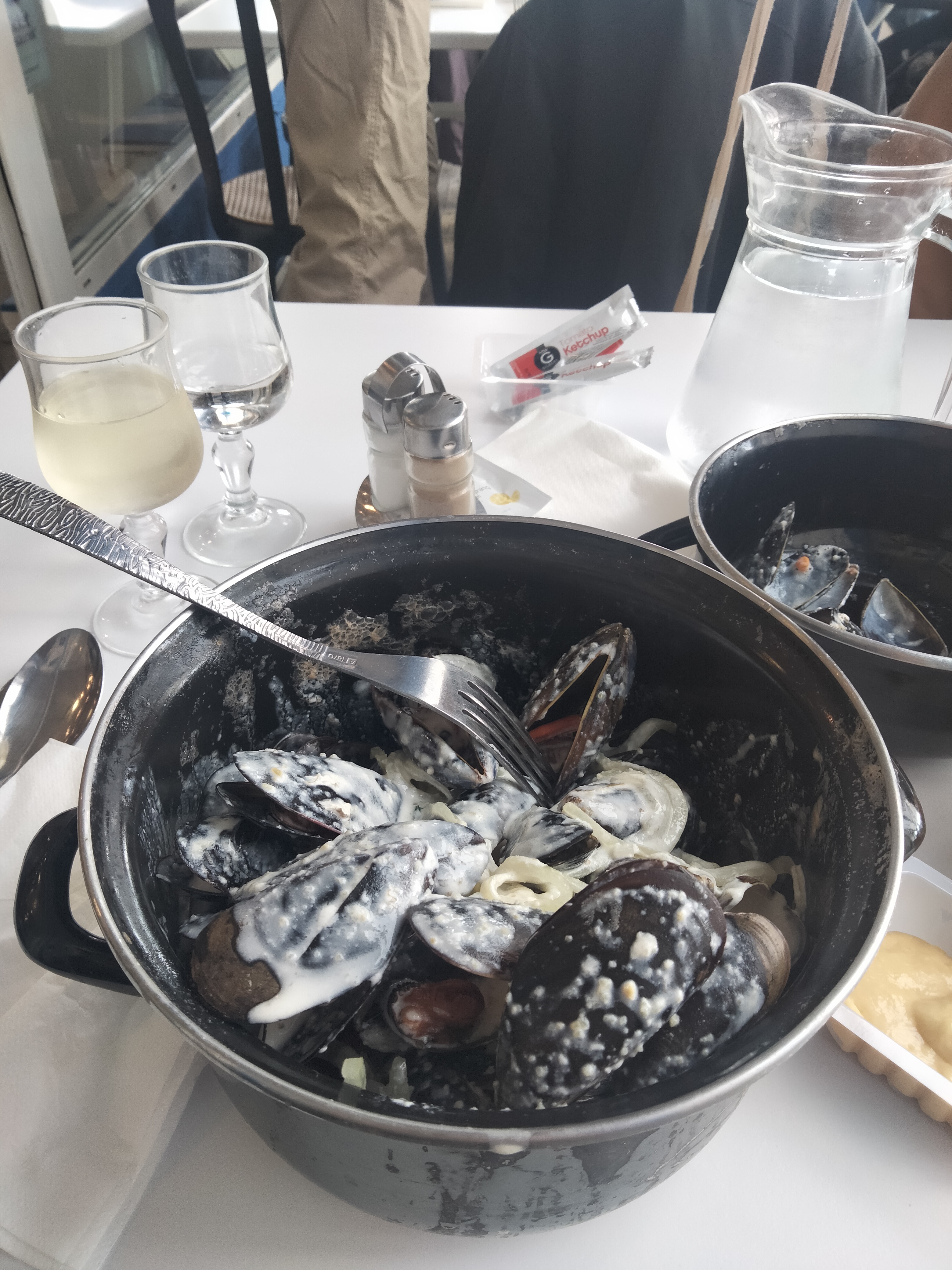 Si vous ne réservez pas : pas de place et c’est normal ! Le restaurateur commande au kilo pour assurer un nombre de couvert défini. Ici on mange des moules fraîches et c’est garanti ! Manque juste des frites maison 😉