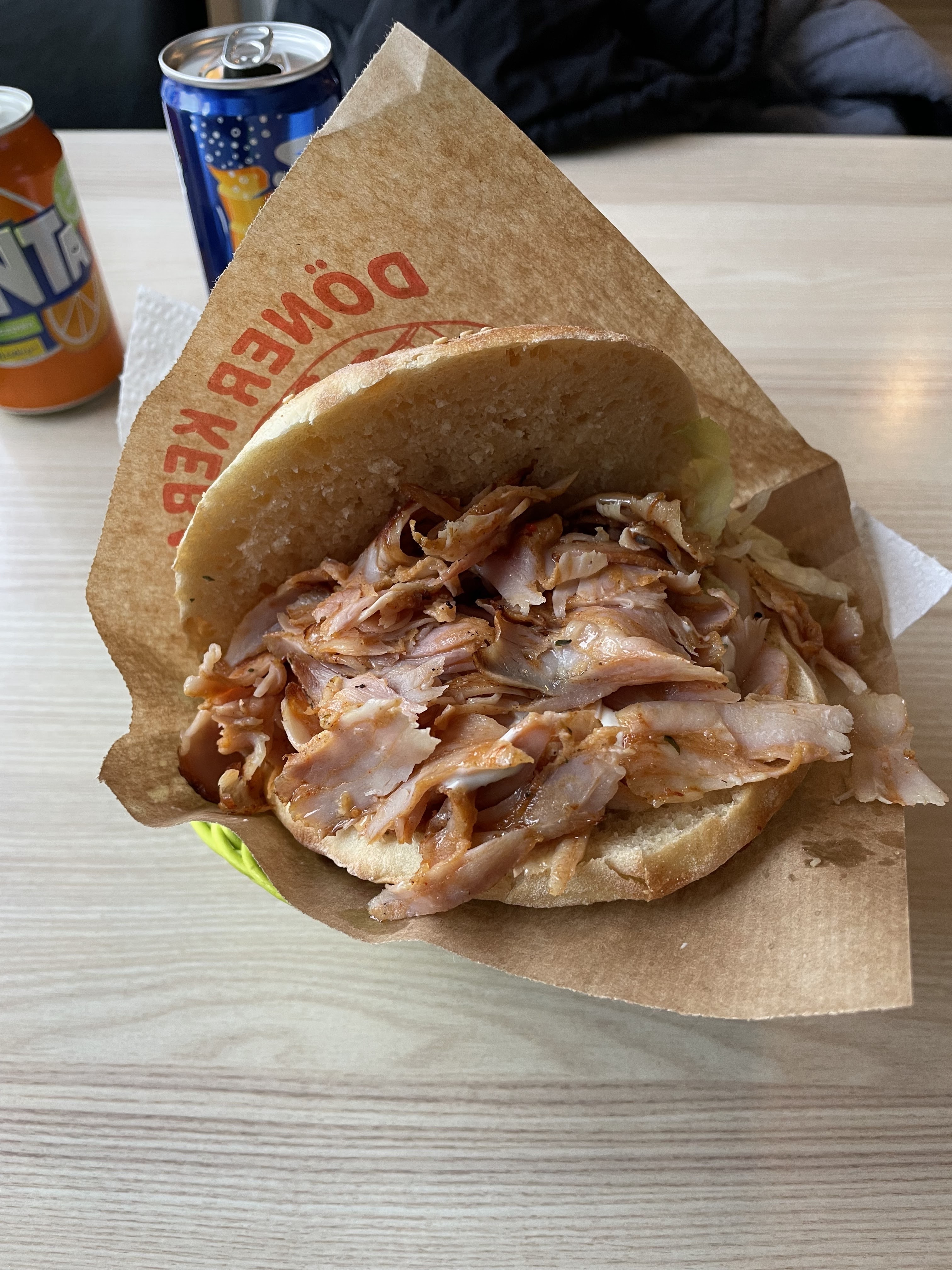 Beaucoup de places assises, service ennuyeux. Le pain pour le kebab est cuit tous les jours, mais le kebab n'avait rien de spécial. Seul le poulet disponible. Remplissage négligent. Vous pouvez le manger, mais rien de plus.