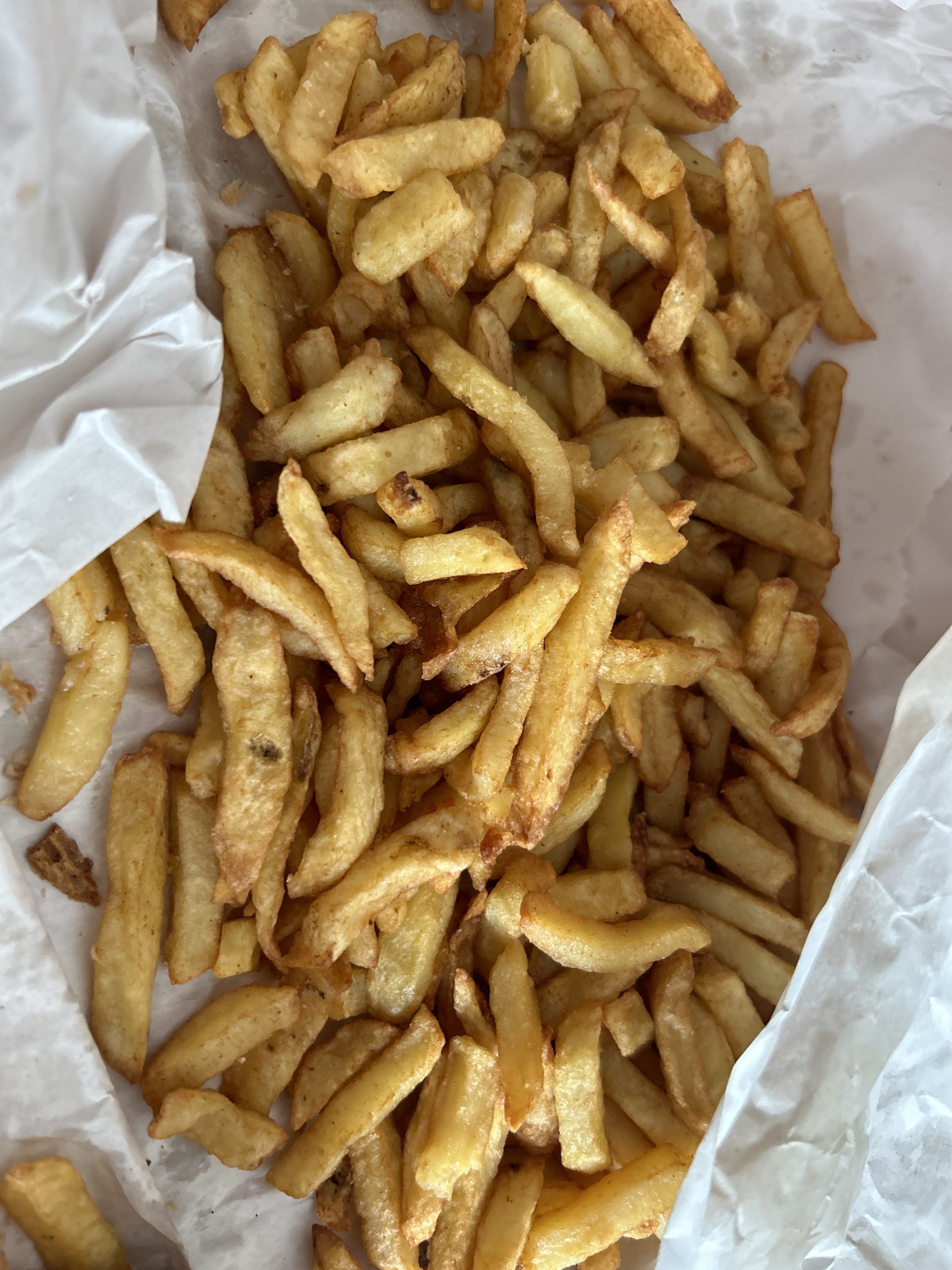 Des vraies frites à la graisse de bœuf. Elle sont très bonnes. Très heureux de trouver une friterie comme en Belgique.
