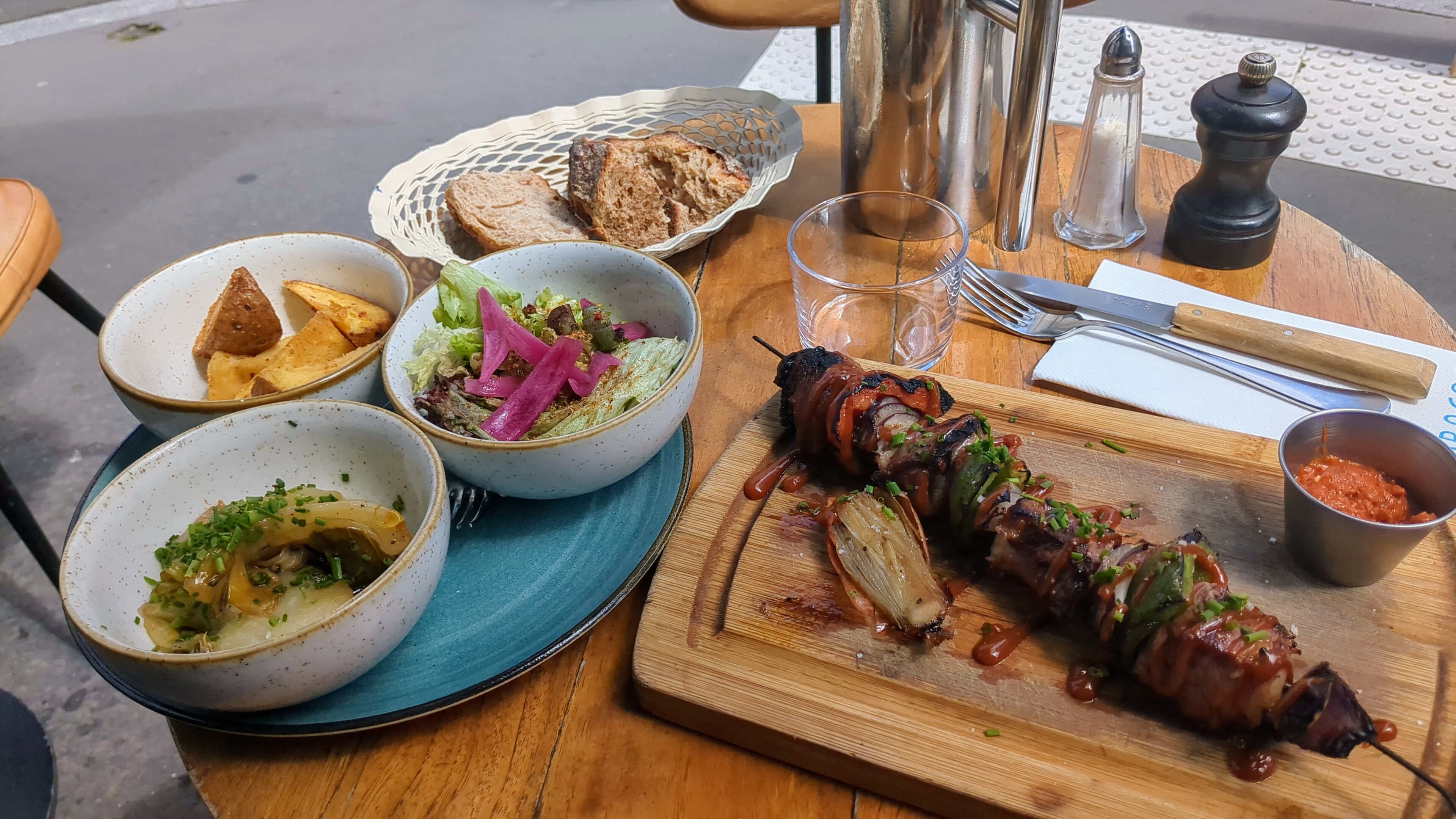 Une pépite ! Venu sur les conseils d'un collègue de bureau (merci Bertrand! 🫶🏼), j'ai apprécié le service avec le sourire tout autant que le contenu de l'assiette! Ma brochette de canard était succulente, avec sa viande cuite à la perfection, ses poivrons et ses oignons grillés 👌🏼😋 Tout comme les sauces, les accompagnements, et même... le pain! Tout était parfait, ça dénote de l'état d'esprit voulu par les gérants, bravo 👏🏼 ! Bref, je crois que j'ai trouvé mon resto favori du midi au bureau ! 😇 #SeeYou(Very)Soon