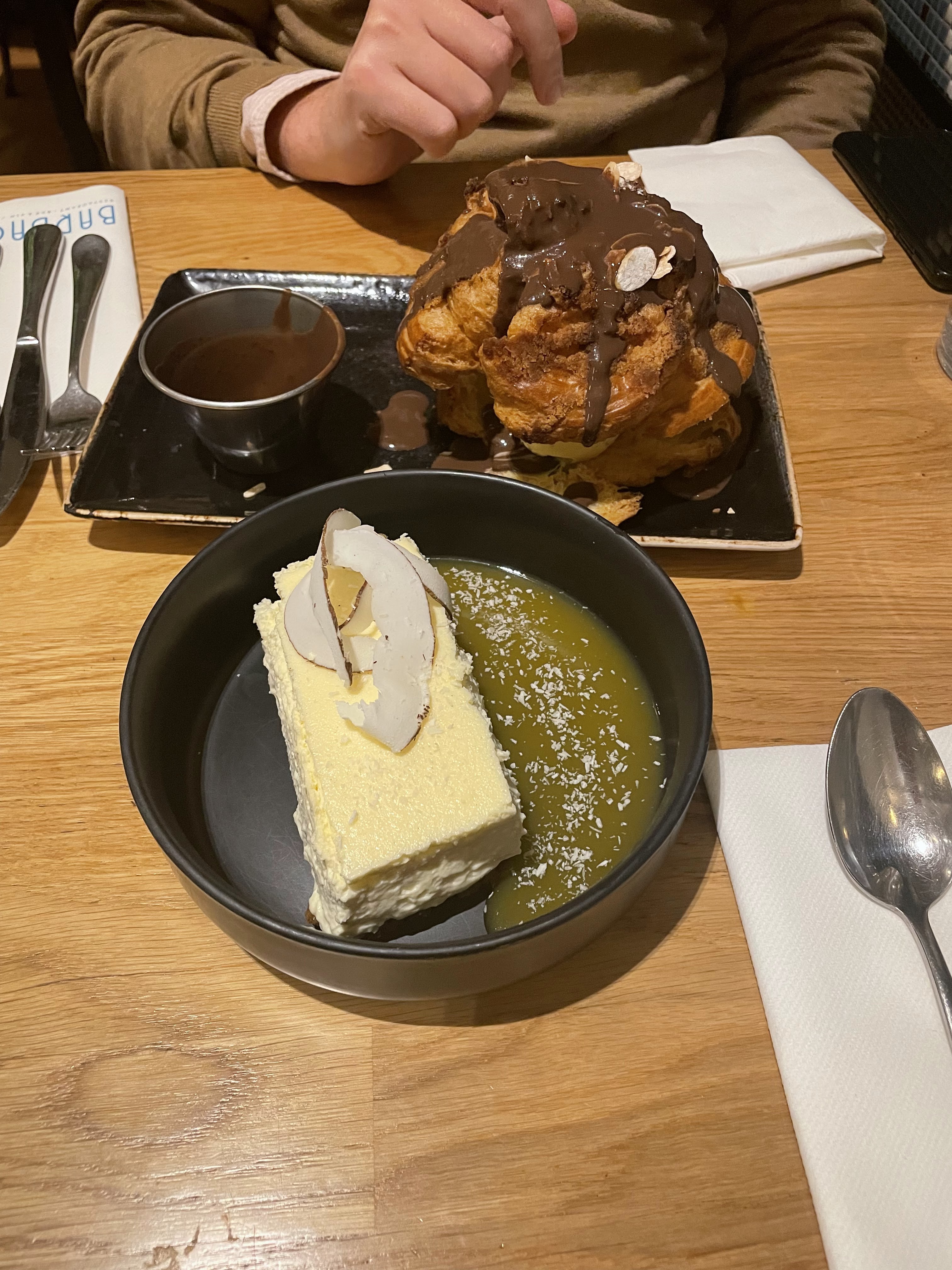Très bon restaurant qui propose des plats braisés. J’ai bien aimé les os à moelle et ce joli dessert.