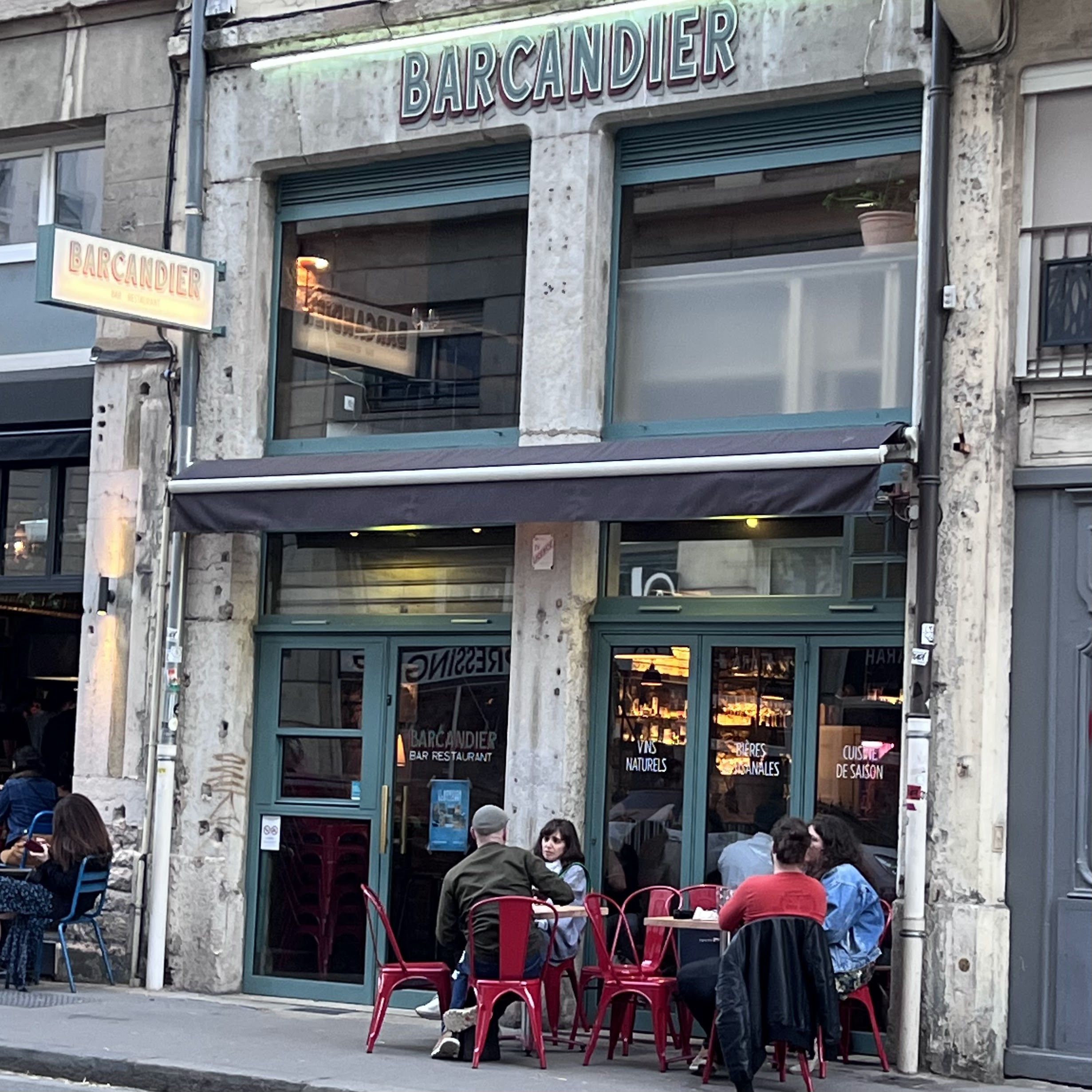 Cet endroit a tout pour plaire : un large choix de bières artisanales à la pression et des dizaines d'autres en canettes pour les amateurs de bière ; excellent vin naturel/bio de la région pour les œnophiles, des petites assiettes joliment réalisées et qui ne font pas sauter la banque (essayez la terrine et la patate douce !), une ambiance et une déco géniales dans un quartier en plein essor. C'est un lieu dynamique : le bar du rez-de-chaussée dégage une ambiance conviviale avec de la bonne musique qui permet de discuter, tandis que celui de l'étage offre une évasion tranquille pour retrouver un ami ou sortir avec un rendez-vous. Je n'étais à Lyon que trois nuits et j'ai fini par aller à Barcandier tous les soirs où j'étais en ville. Je ne peux vraiment pas en dire assez sur cet endroit, ne le manquez pas ! J'ai vraiment hâte d'y retourner lors de ma prochaine visite!