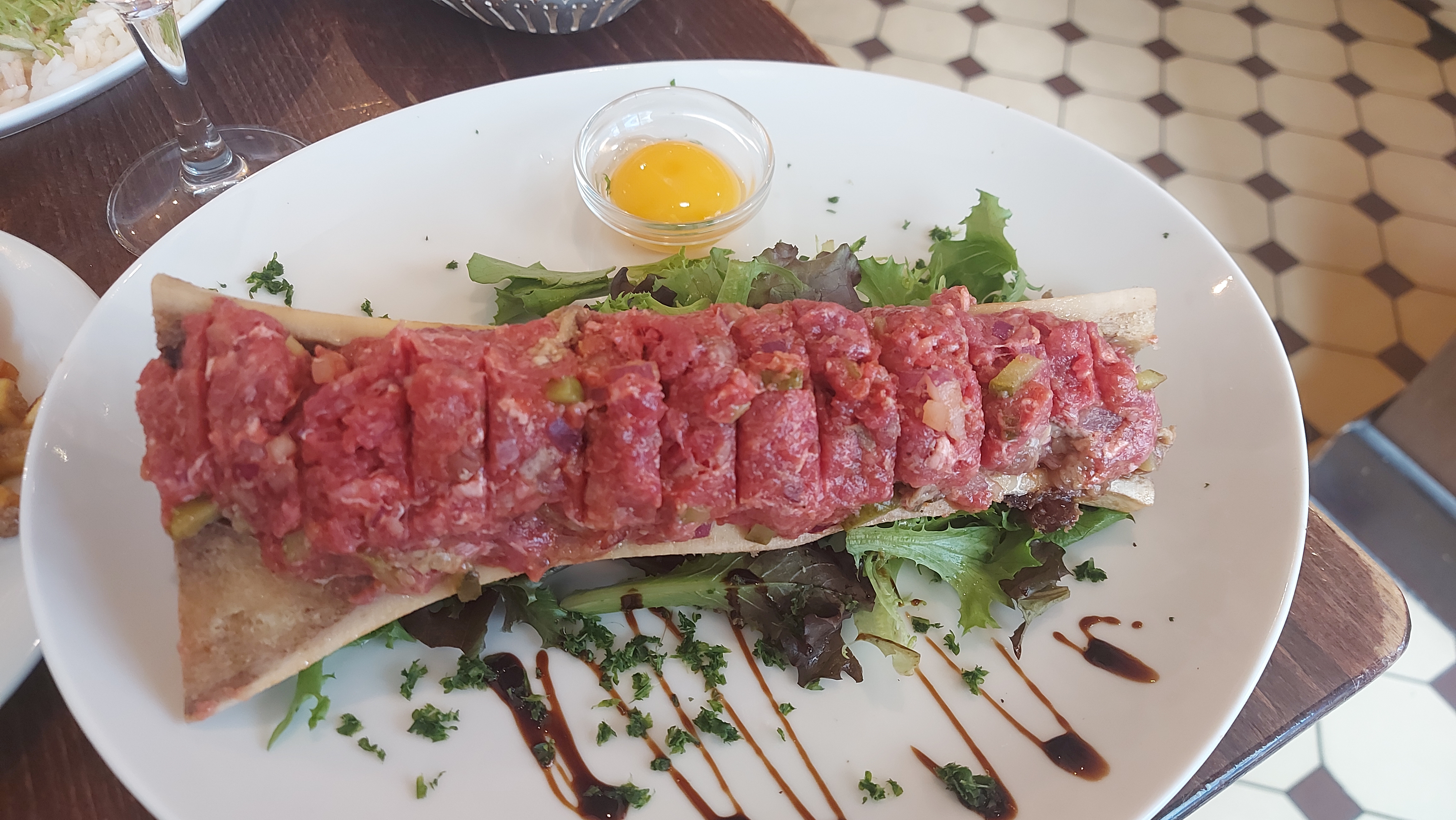 Déjeuner tardif dans cette belle affaire repris depuis 4 ans par les nouveaux propriétaires. Os à moelle généreux, superbement bien servi, onglet servi avec des pommes au four. Service attentionné et adorable. Bravo à toute l’équipe!
