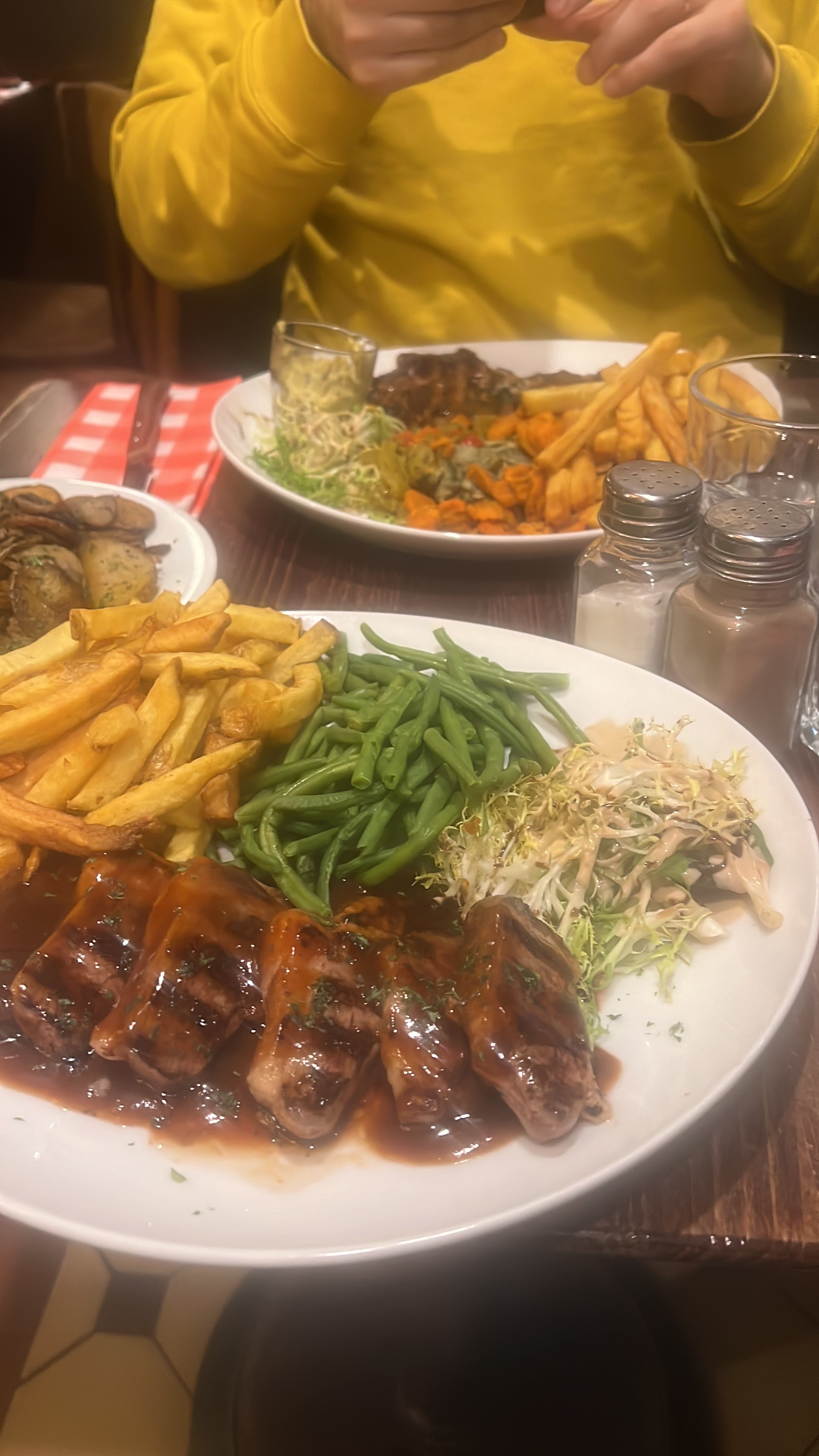 Très bien mangé mais les portions ont vraiment diminué (escalope de veau au roquefort) dommage...