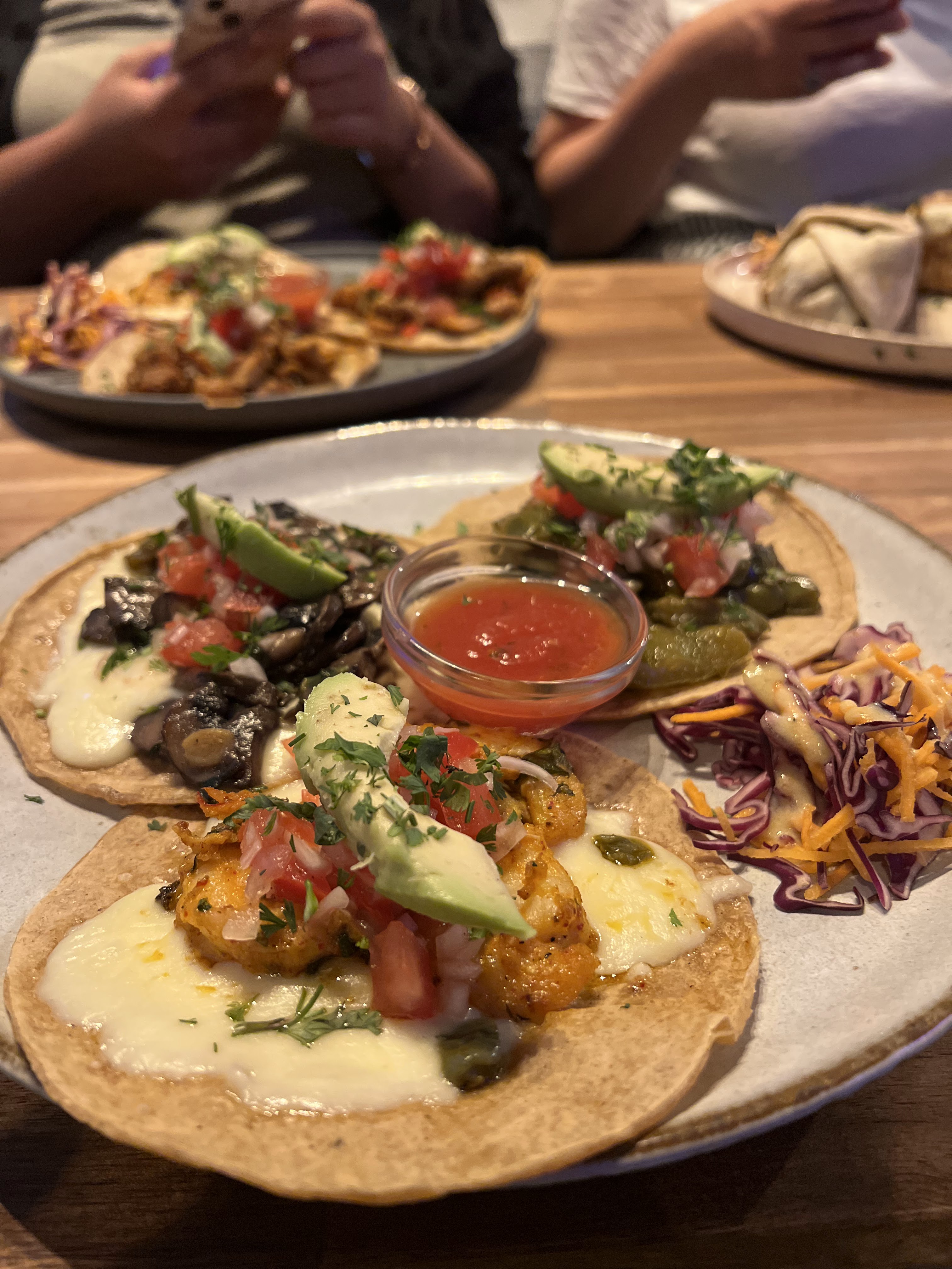 Un bon et petit restaurant mexicain ! On a mangé les quesadillas pour l'entrée et les tacos. Il y a 9 goûts de tacons et j'ai beaucoup aimé ce concept. J'ai pris les tacos du poulet/champignon/crevette et ils étaient tous bons, surtout, j'ai adoré le tacon avec les crevettes ! Trop bon. (J'ai goûté aussi le tacon cactus qui a l'air intéressant et le goût est un peu comme les poivrons.) La sauce piquante et la sauce salsa étaient bonnes. Petit bémol, la table était petits (il faut bien s'organiser pour mettre vos plats/bossions/bouteille d'eau.) et la musique était trop forte, mais ça ne nous empêchait pas de profiter des plats. Merci :)