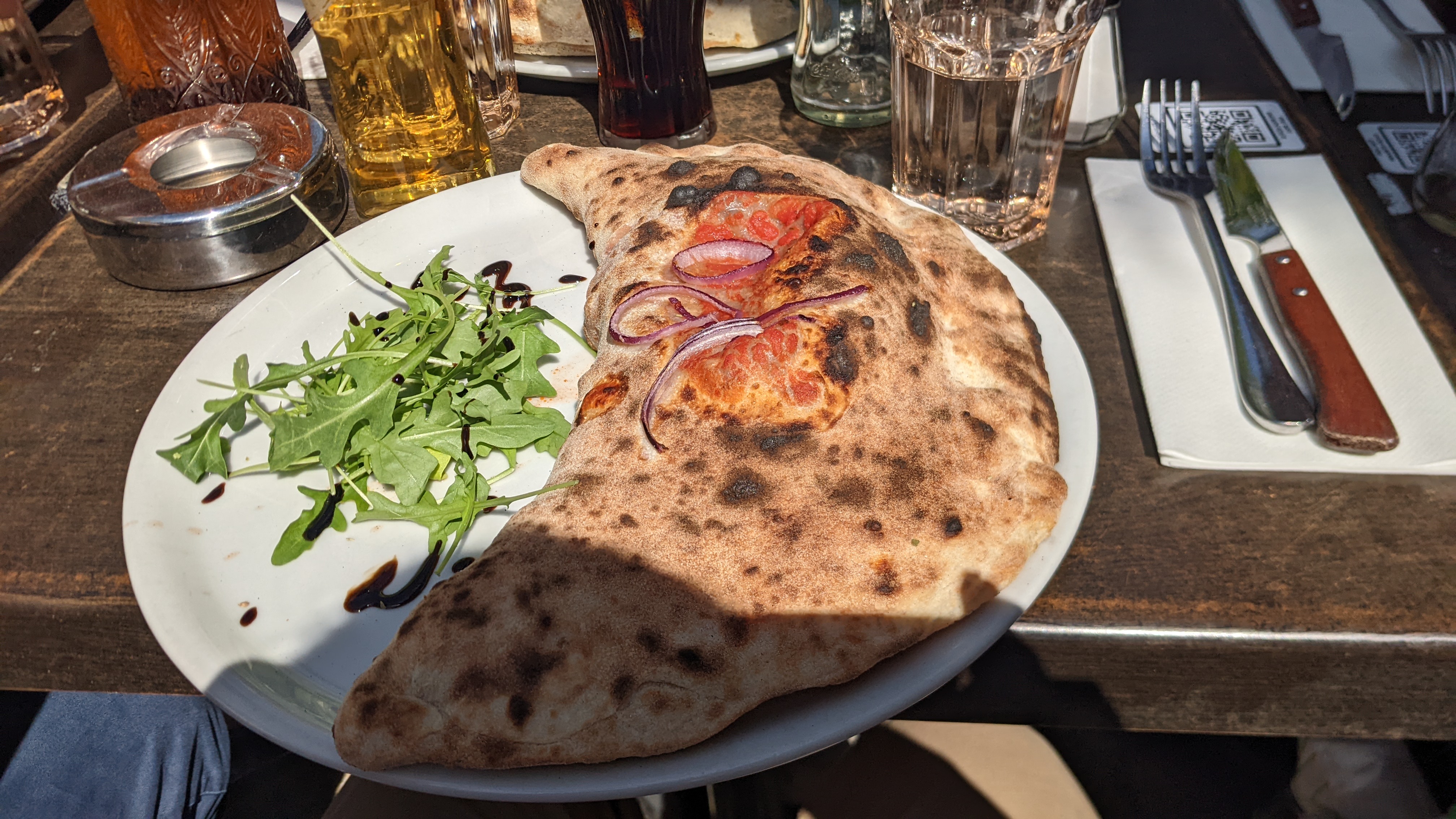 Le lieu est tres agréable, surtout avec ces baies vitrés où le soleil nous rechauffe malgré les températures fraiches ! Tres bonnes pizza comme d'habitude, des options vegetariennes, niveau qualité prix au top !