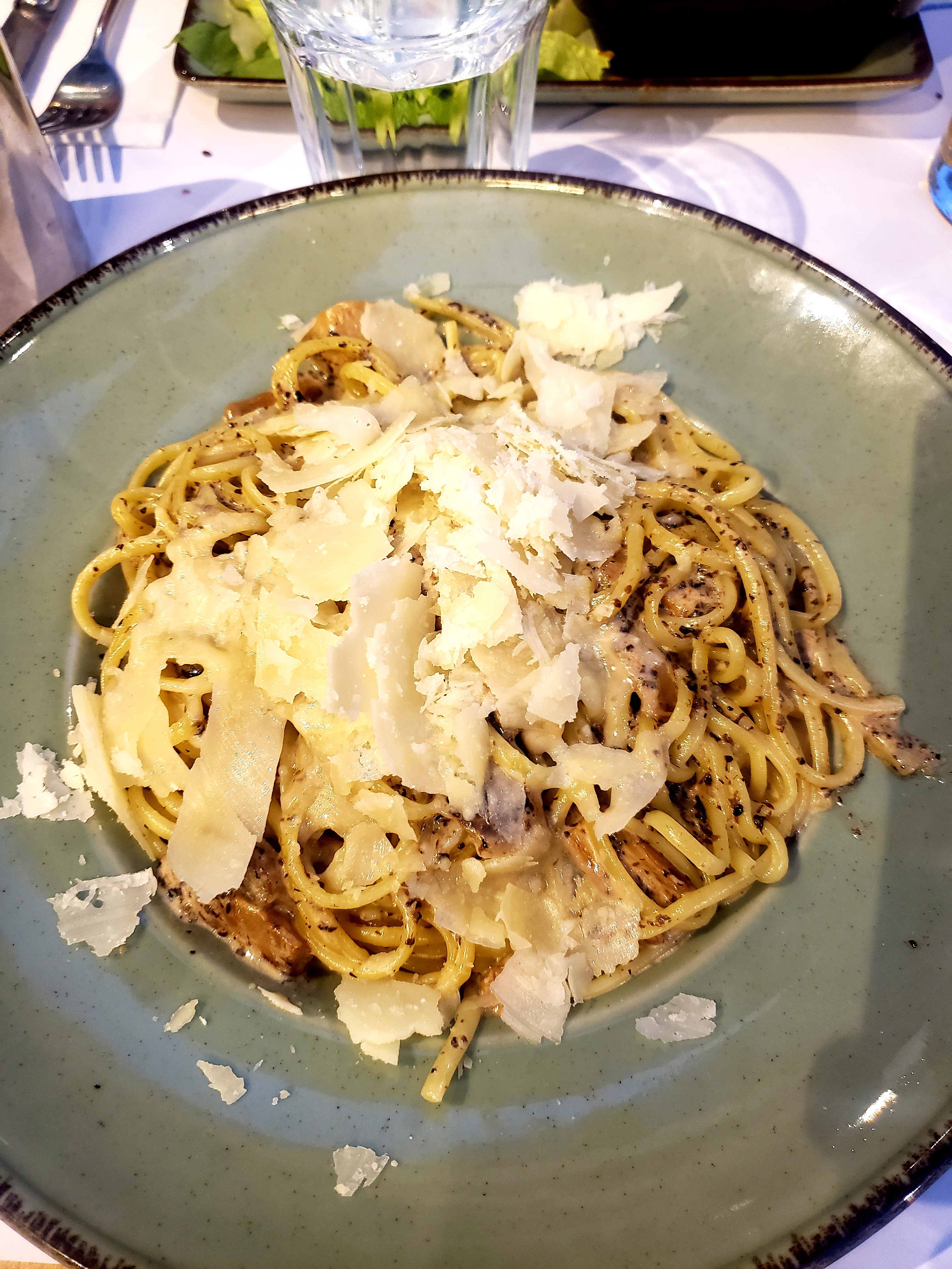 Arrivée trempée dans ce restaurant. Tout le monde a été aux petits soins. Service efficace. Très bons plats: Assiette de antipastis à partager avec jambons légumes et fromage. ossobuco de veau avec petits légumes. Risotto aux truffes. Escalope de veau crème et truffe. Tout était très bon. Très copieux. La décoration est sympa et cerise sur le gâteau très grande terrasse derrière, qui doit être très agréable les jours de soleil.