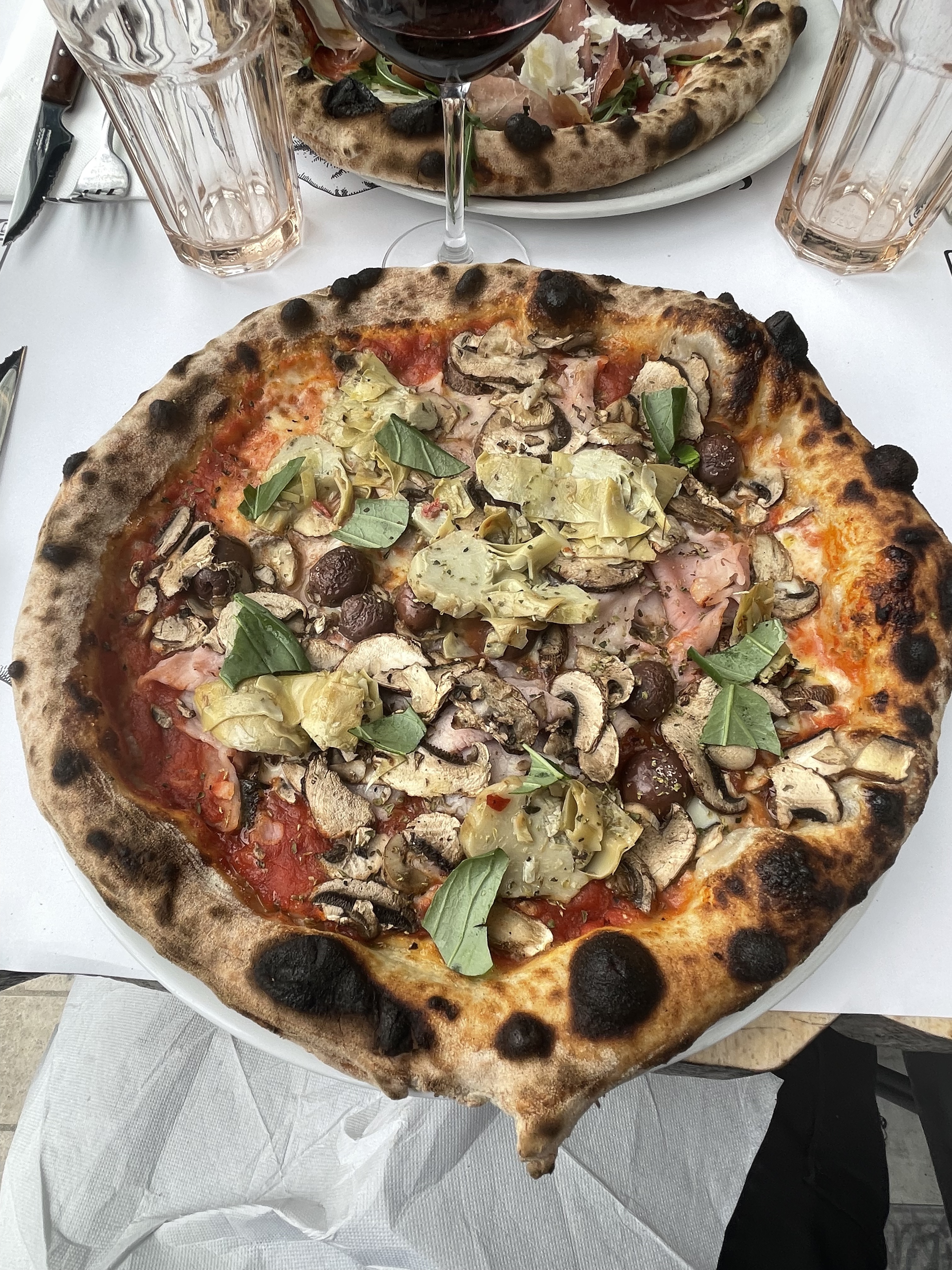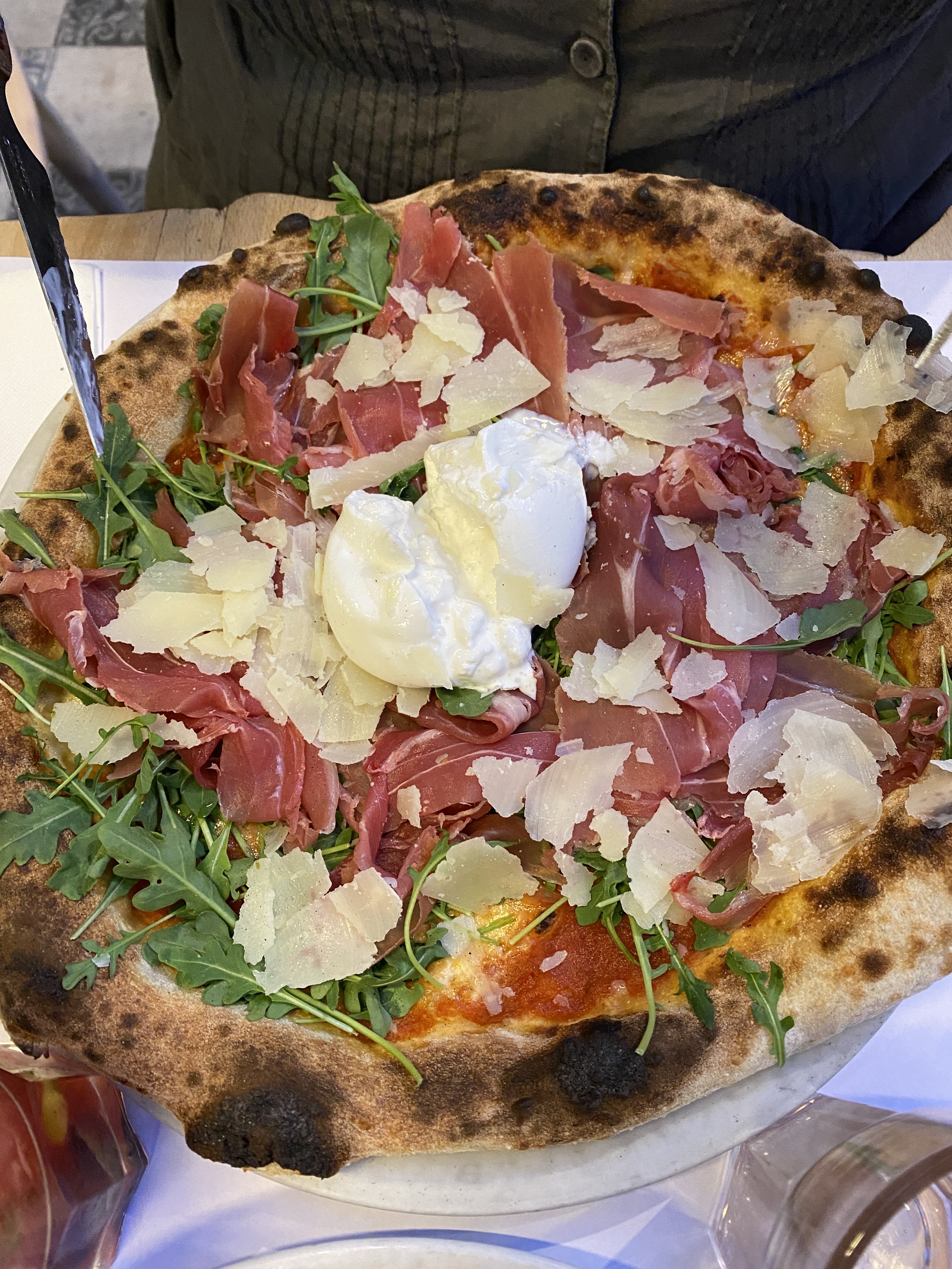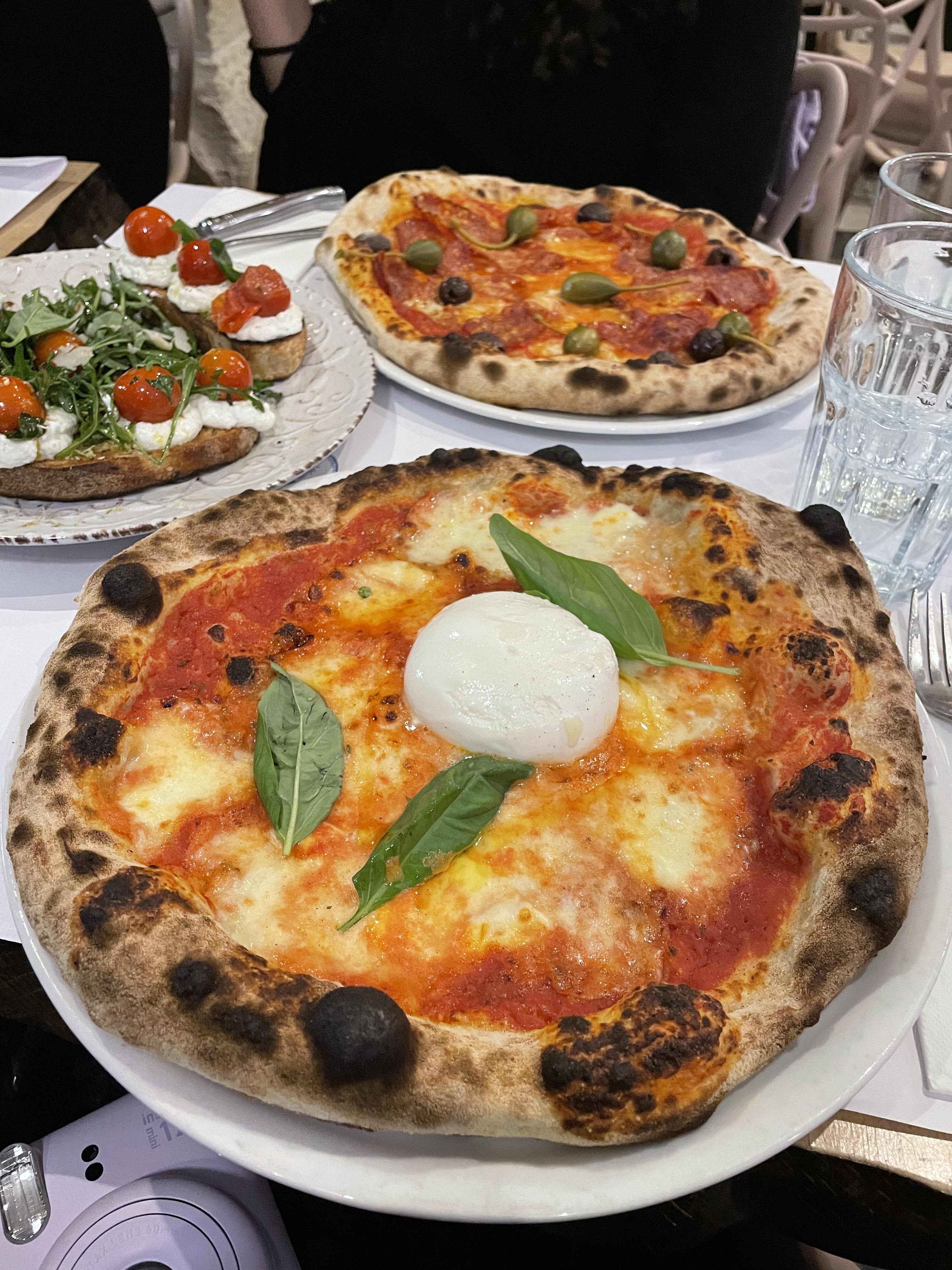La pâte à la truffe et la bruschetta étaient excellentes, la pizza était bonne mais la Diavola était un peu trop salée avec son salami épicé, ses câpres et ses olives. Le problème principal a été qu'ils ont refusé de nous faire asseoir car nous n'étions pas au complet... nous attendions deux amies. Nous sommes donc restés plantés devant l'entrée pendant plus de 10 minutes alors que nous aurions volontiers attendu avec un cocktail. Mais bon, ce sont leurs règles, c'est leur établissement... je peine à comprendre la logique(pas besoin de réécrire en commentaire vos explications qui ne m'ont pas convaincu). Si j'avais su, j'aurais préféré attendre et prendre un verre dans un bar avant. Je travaille dans le métier de la restauration et du service, je connais donc les contraintes et les enjeux... Donc lorsque je vais au restaurant pour bénéficier d'un service, j'aimerais qu'il soit égal à celui que je fournis dans mon propre travail.