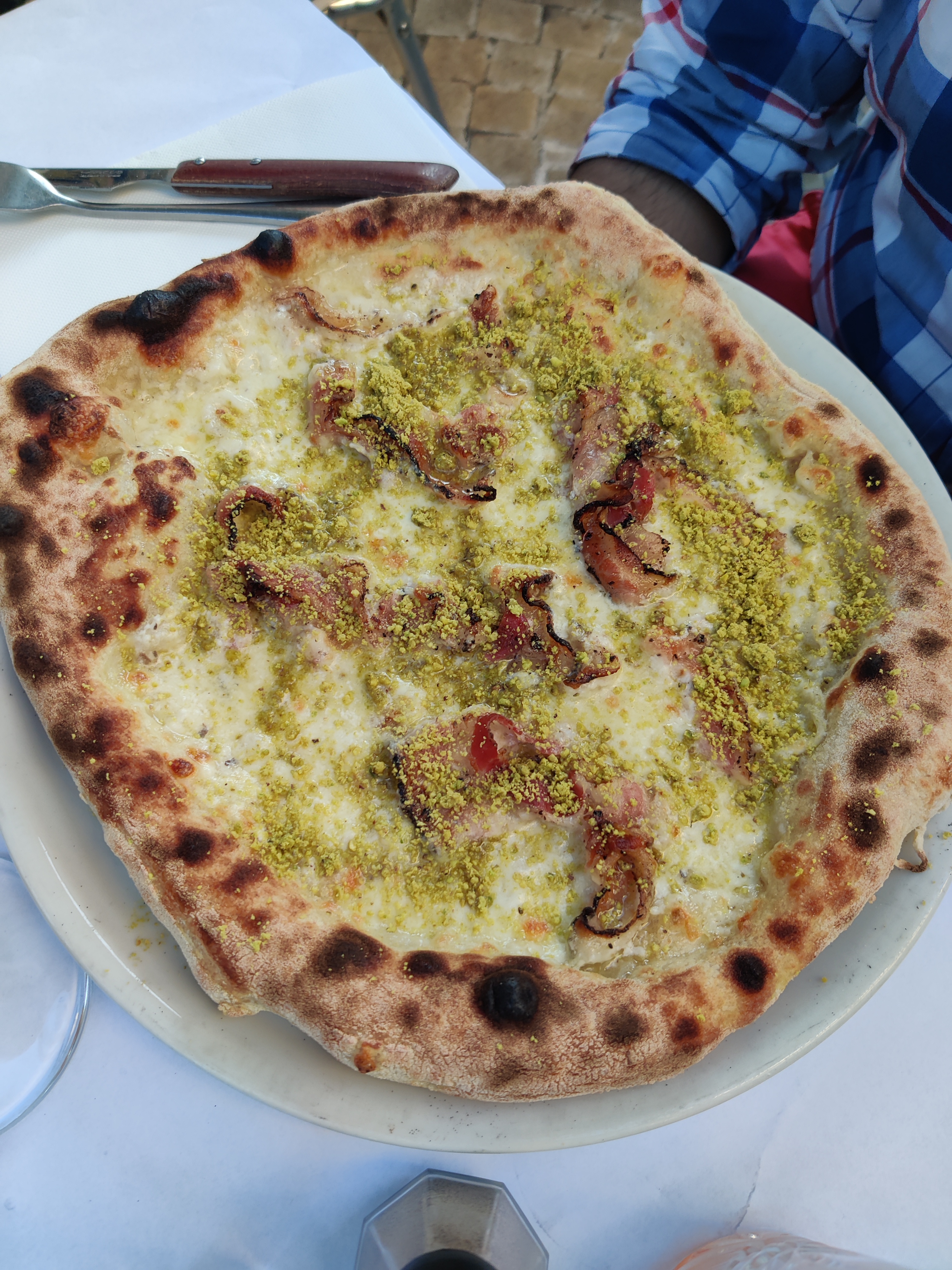 Des pizzas très goûteuses des prix alignés aux concurrents. Un grand espace joliment décoré mais très bruyant et limite impression d’être à l’usine. Sur le chemin des toilettes, gare à ne pas se prendre un regard de travers d’un serveur un peu trop speed, que l’on a la sensation de gêner… Le gérant était très sympa en revanche mais on était un peu livrés à nous meme pour être placés et le temps d’attente était beaucoup trop long. Une énorme table est arrivée après nous et a été servie avant nous. Bof acceptable. Le vin n’était pas excellent. On recommande quand même les pizzas généreuses et surtout celle à la pistache que nous n’avions jamais goûtée et qui est exquise!