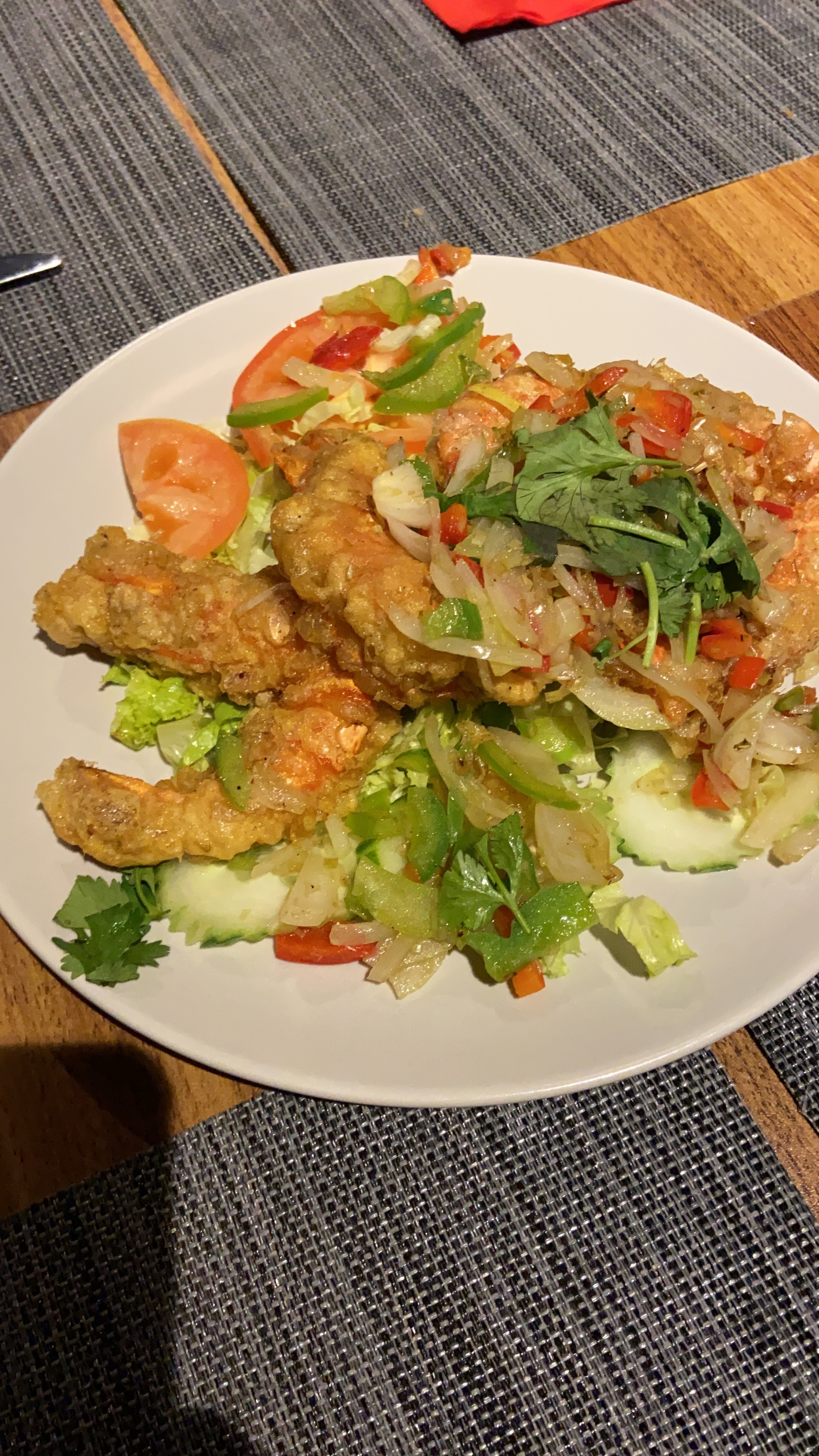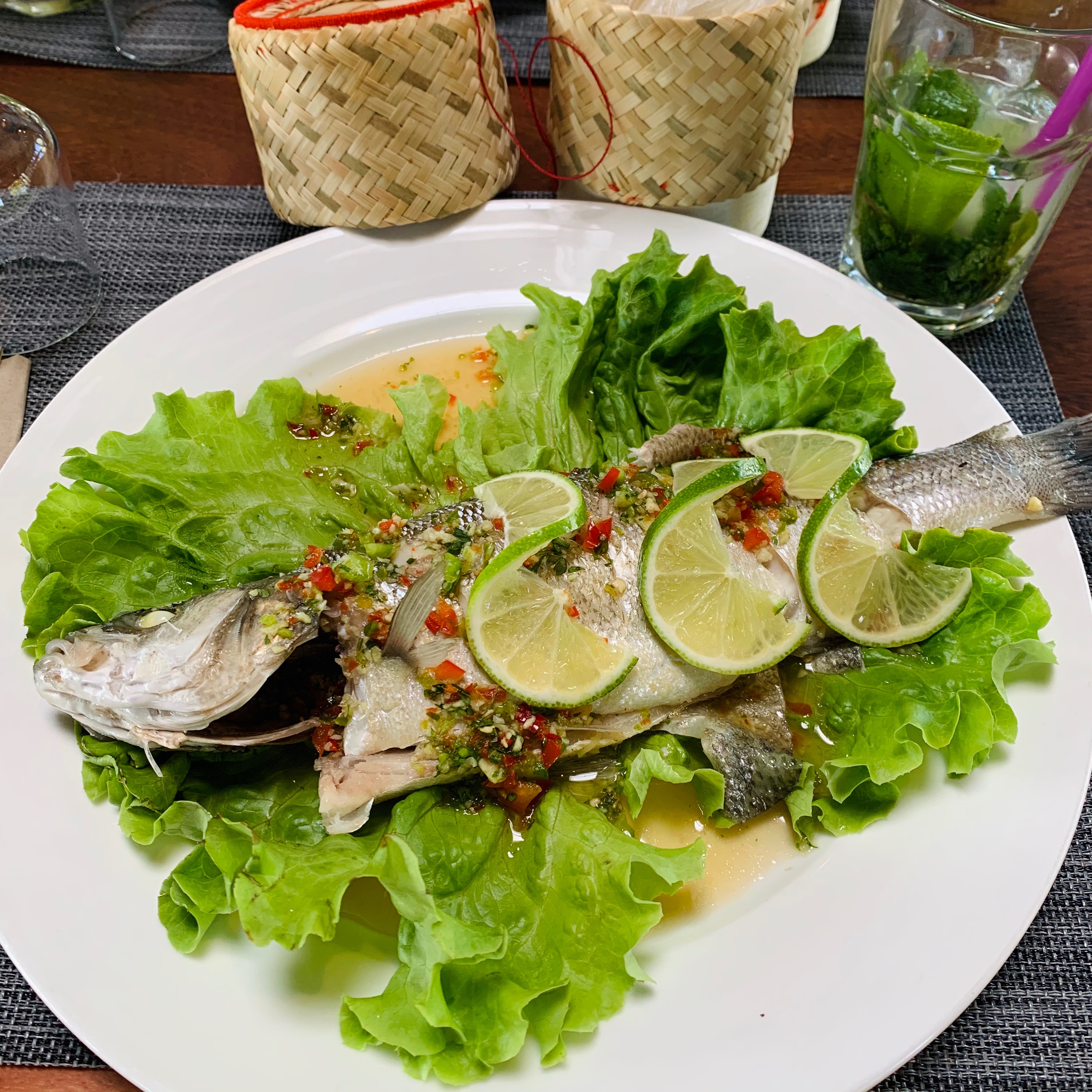 Très bon restaurant je recommande !! Salade crevette très rafraîchissante et le bar était juste sublime avec citronnelle et légèrement relevé....serveurs super sympa...très bon dîner.