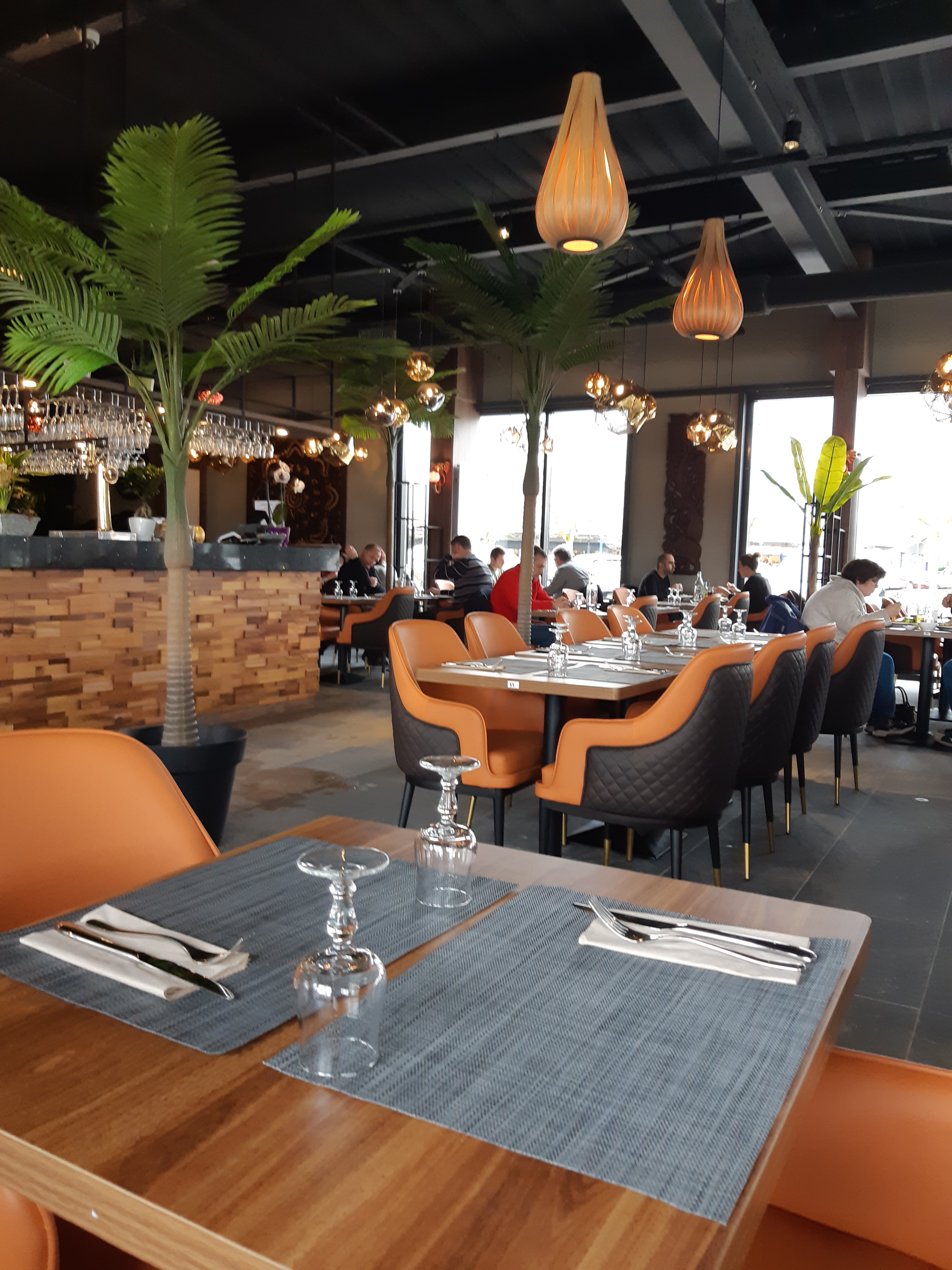 Très beau restaurant. Accueil chaleureux et professionnel. Service rapide. Prix tout à fait correct. Par contre : le mojito est plus proche de l'eau : pas d'alcool, pas de menthe et de citron (à part les feuilles et les quartiers dedans). Et nous n'avons pas eu de chips (alors que les ramequins étaient préparés sur le bar) Les nems sont moyens en goût Le plat est très bon mais pourquoi les autres clients ont tous des belles assiettes creuses et nous de simples assiettes plates ? Le dessert : je voulais un flan qui faisait 0,50 cts en plus sur la carte mais si je voulais le changer dans mon menu, je devais ajouter 3 euros !!! Enfin bref : je n'y retournerai pas.