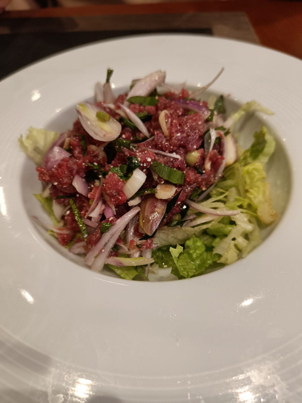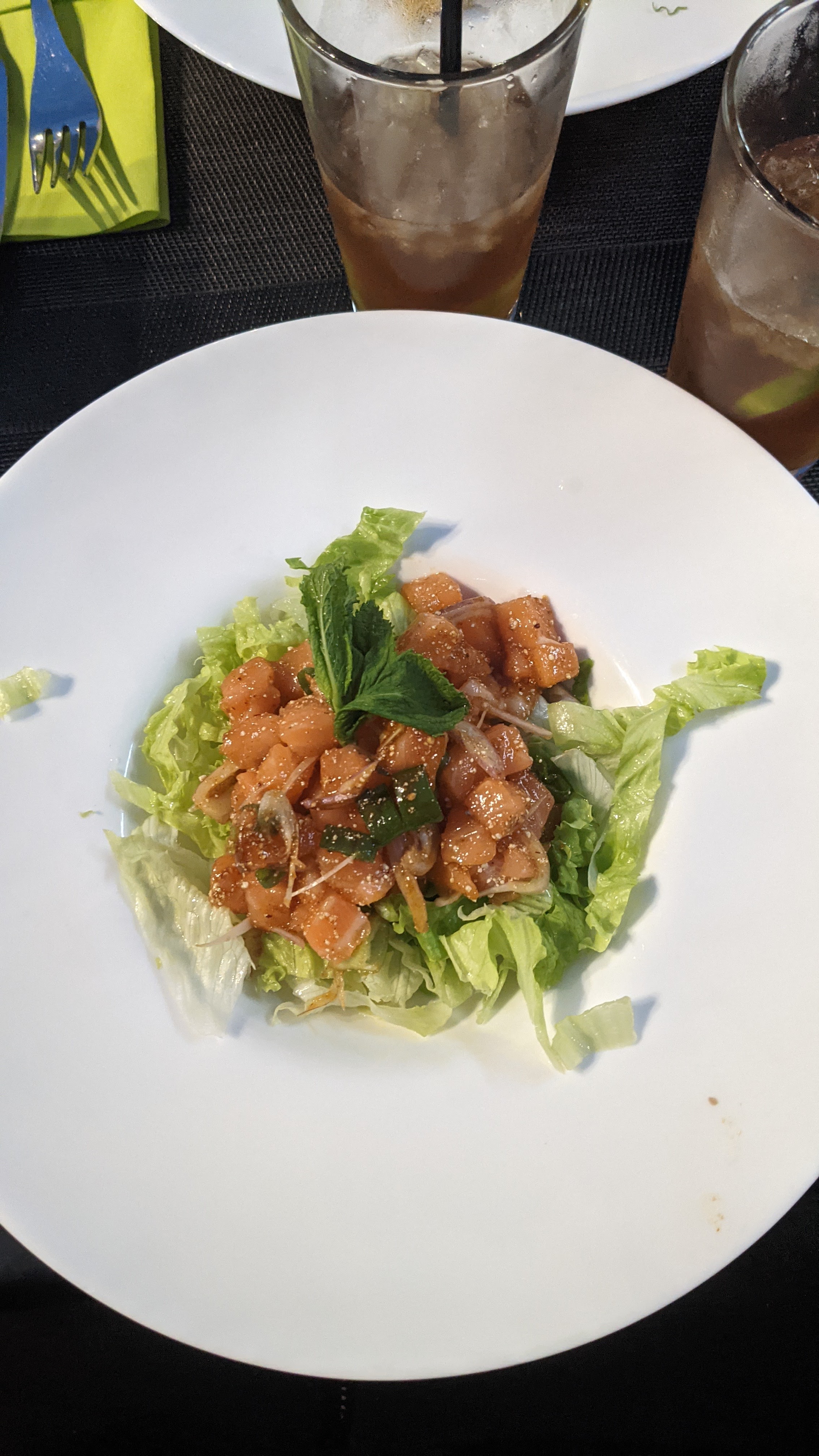 C’est la première fois que je mange les plats thaï et j’ai découvert une nouvelle gastronomie! Franchement c’était très bon. J’ai goûté le tartare saumon comme entré et le fruit de mer .... j’ai oublié le nom mais il y a ananas à l’intérieur! C’est mon fruit préféré ! De plus il y a des légumes et les crevettes et beaucoup d’autre fruit de mer. Avec ananas le goût est un tout petit peu acid mais c’est très bon. Je vais forcément goûter le bœuf sauté la prochaine fois.