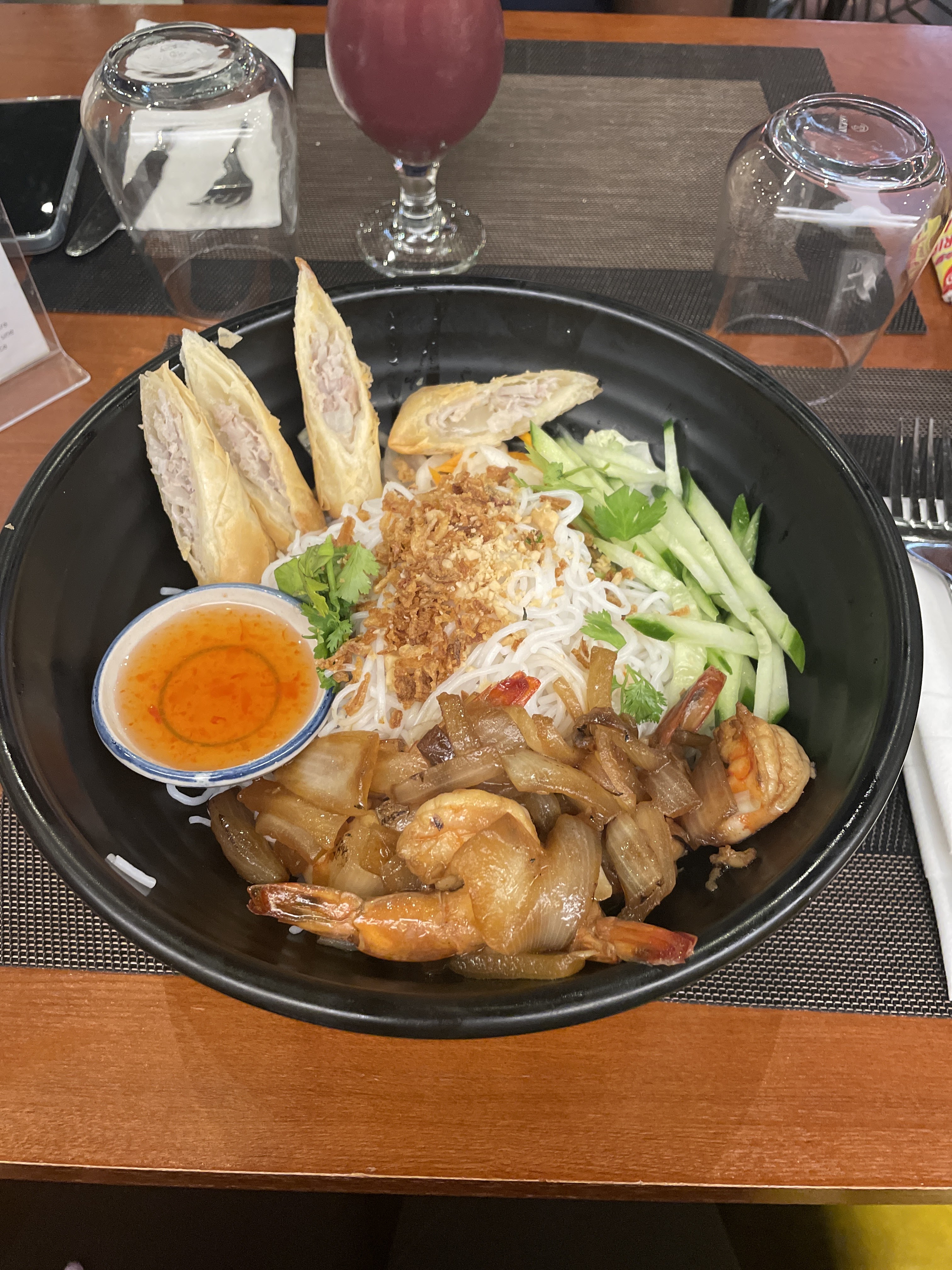 Première fois dans ce restaurant. Nous avons pris le pad thai kai un peu trop salé à mon goût mais sinon le bobun très bon. Un peu déçu car le décor et les serveurs à la hauteur c’est dommage mais je pense que d'autres plats sont meilleurs. Les prix sont corrects, à essayer !