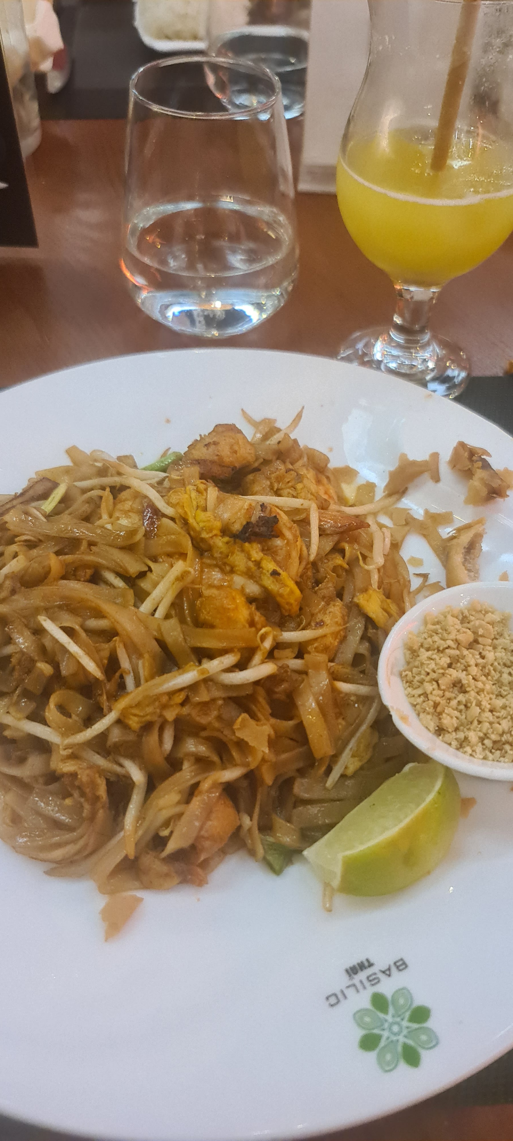 J'ai déjeuné aujourd'hui avec ma mère. Nous sommes arrivés vers 12h00. J'ai pris un Pad Thaï aux crevettes. Il était excellent. Je me suis régalé. Avec ce beau soleil, nous avons mangé à l'extérieur mais la salle est très belle. L'accueil était top et les prix très abordable. Et c'était très propre. J'y reviendrai les yeux fermés. Je recommande ++
