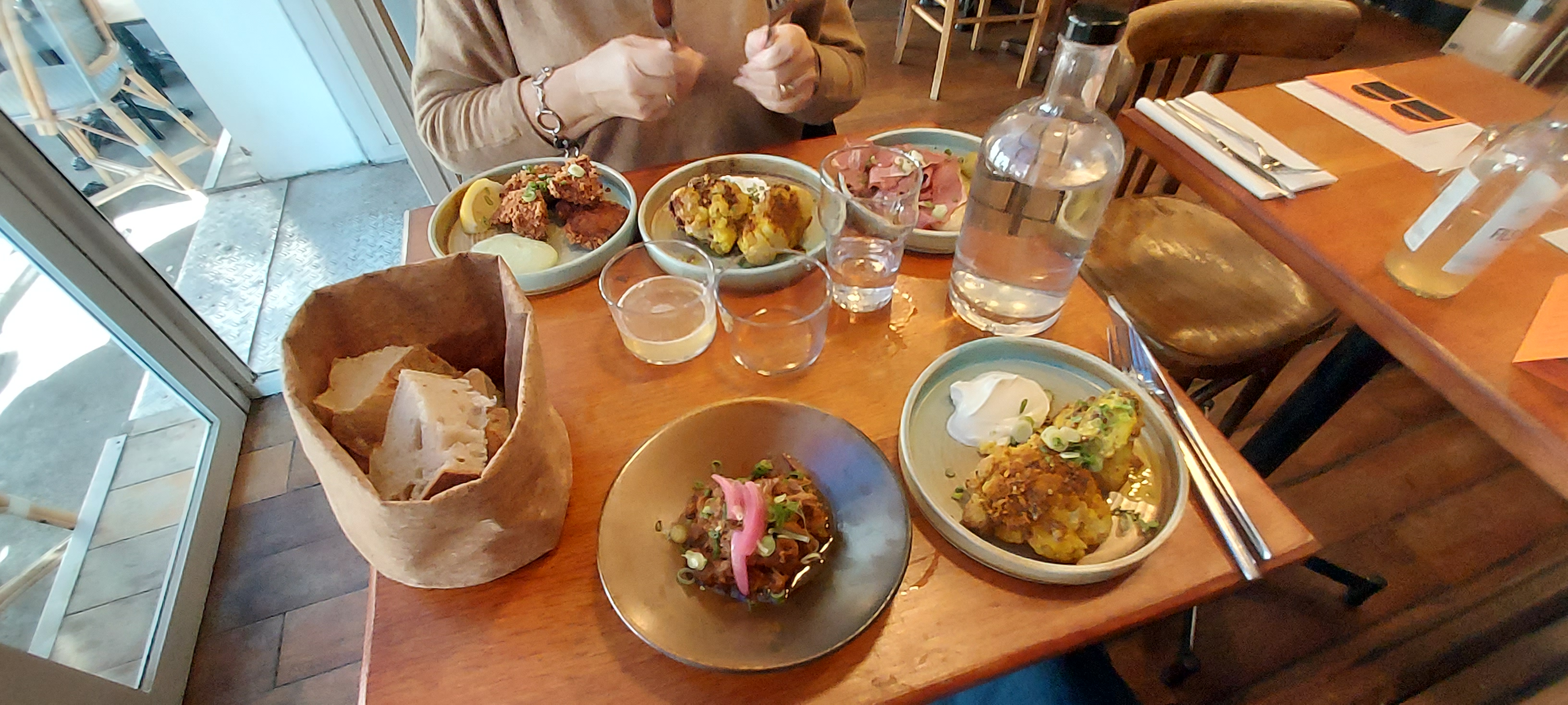 La note de ce restaurant me semble injustifiée. 48 euros pour : une petite portion d'effiloché de porc pas mauvais mais très épicé, 4 boulettes au comté, 4 boulettes d'agneau (sensées être chaudes mais à peine tiède) + un peu de potiron + 2 verres de vin naturel (bons) + un accueil un peu sec + une digestion compliquée pour les deux convives. Si le restaurant porte assez bien son nom, il me semble qu'on mange mieux pour moins cher à Paris