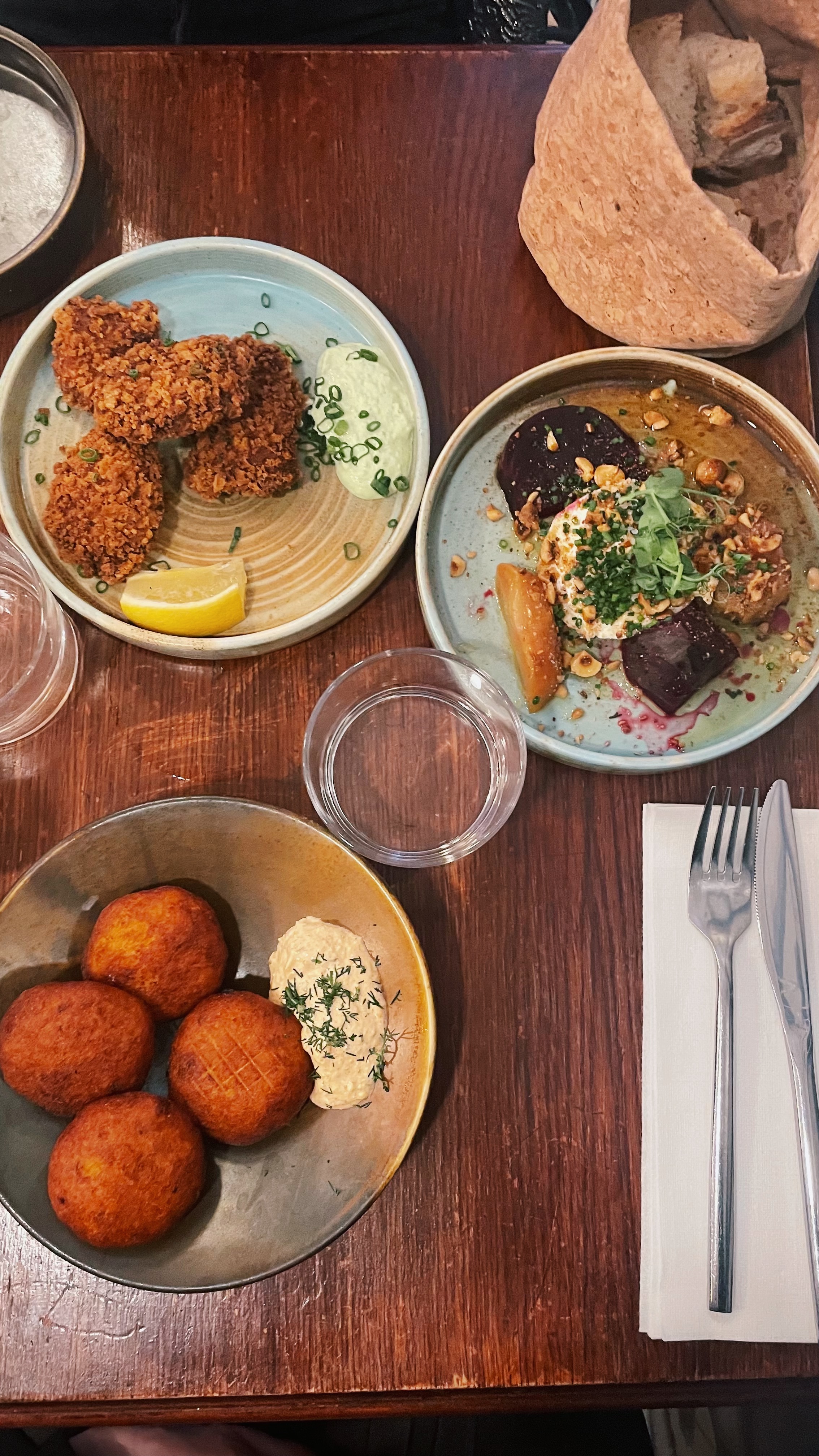 Parfait ! Nous avons testé plusieurs plats à 3. Les carottes rôties étaient très tasty. Mention spéciale à la betterave rôtie à la burrata et aux tomates/pastèque/feta. Ces deux-la étaient incroyables ! Les croquettes de pomme de terre étaient très bonnes. Limite, c'est le poulet panko qu'on a pris en double en choix sûr qui était le moins bon de tous, toit en étant très bon. Nous reviendrons ! 😍