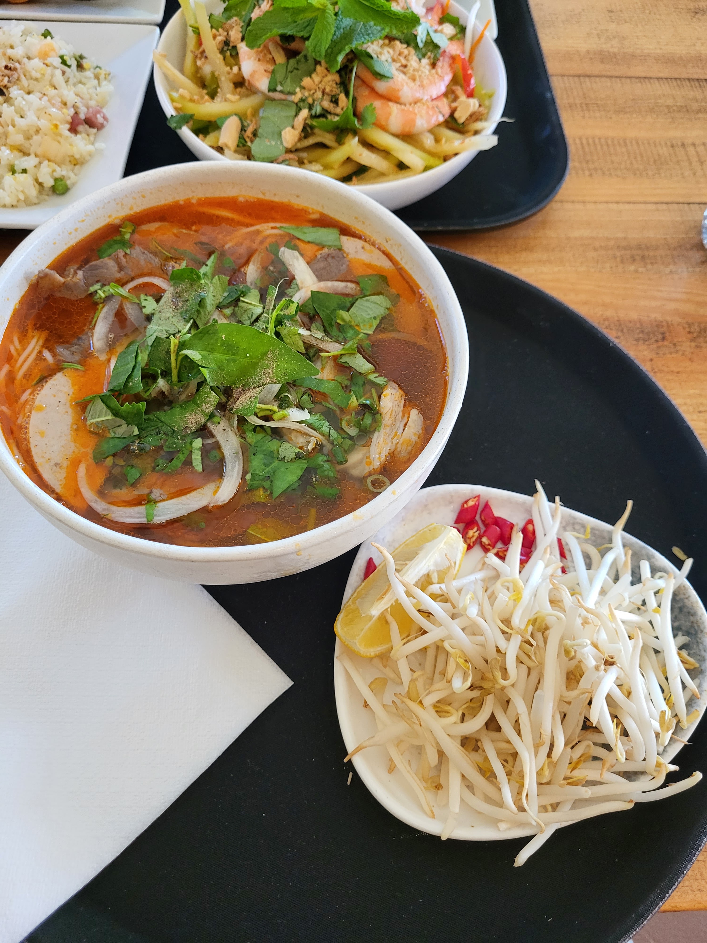 Super restaurant, salle spacieuse et hyper bien décorée. Les plats sont délicieux les nouilles jaunes sautés aux crevettes et le bobun crevette sont délicieux !! Le service est impeccable et les prix très abordables. Je recommande !