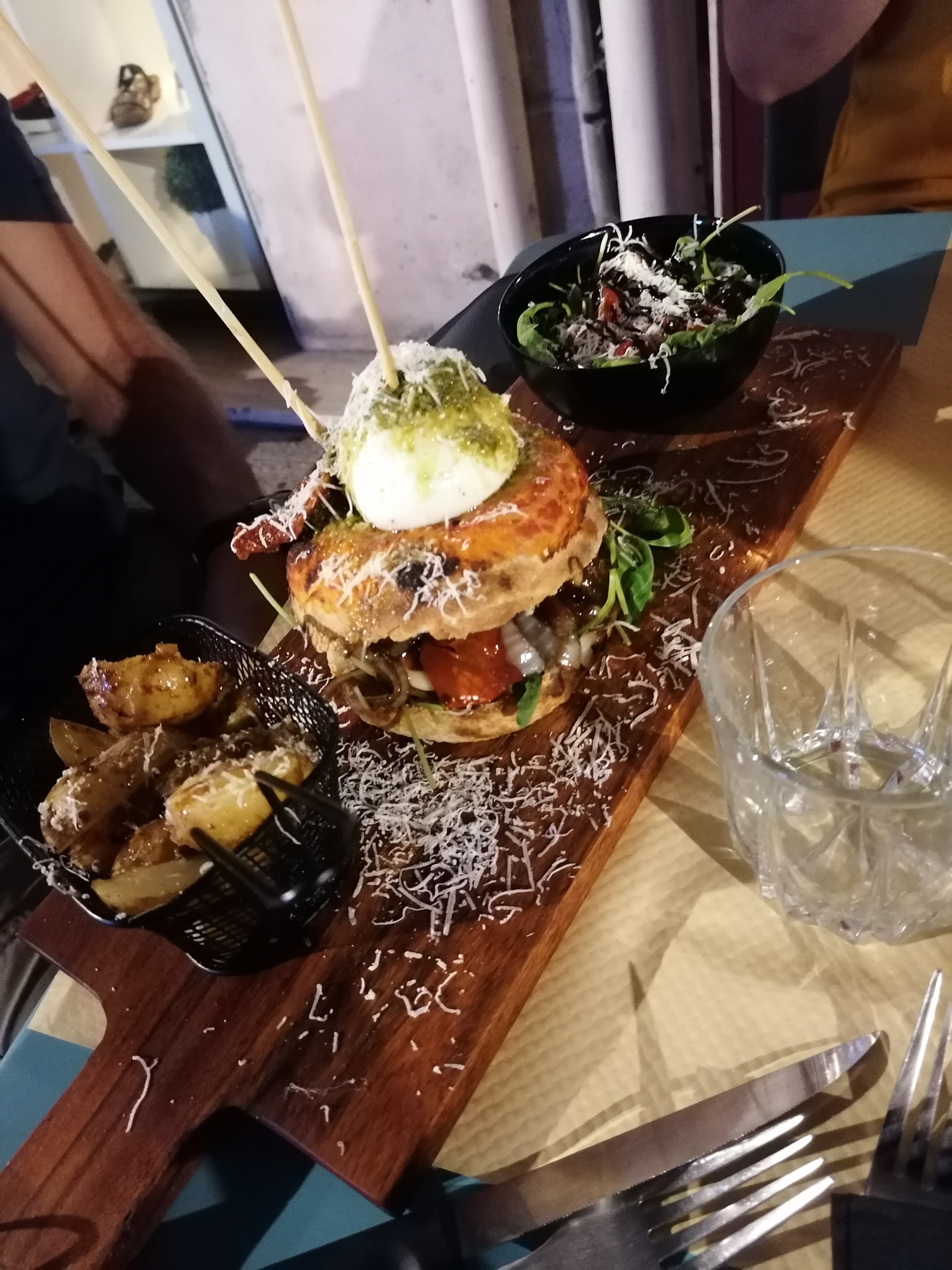 Habitué des restos, une belle adresse. Les pizzas sont bien garnies et présentent bien et ont l'air très bonnes. J'ai voulu tester tout de même le burger (ce qui est innovant pour le coup) qui est très beau, très bien agrémenté de bons produits italiens (spinata piccante, burrata, Guanciale ou équivalent, galette de pdt, etc) mais juste, j'ai trouvé que la viande qui est la composante majeure d'un bon burger, et qui devait être de la black angus et bah clairement c'était de la viande soit faisandée ou alors mélangée avec autre chose, style chair à saucisse. Donc plutôt déçu par le burger qui me donnait tant envie. Sinon le service, rien à redire, c'est impeccable.