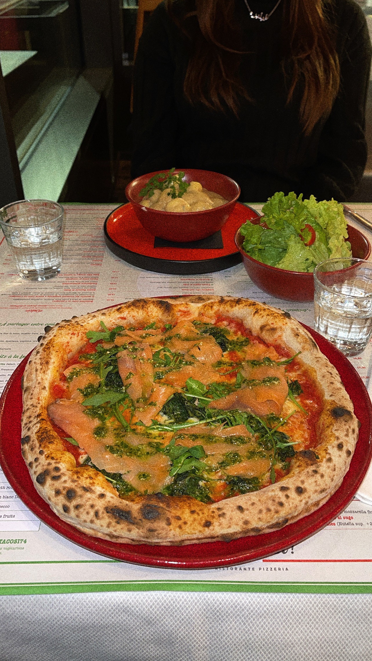 Jai choisi une pizza avec de la creme de truffe que je n'ai absolument pas senti (alors que c'est tout de même assez fort en goût), les cèpes n'avaient pas plus de goût (boite?). 18€ une pizza c'est tout de meme assez excessif, surtout si elle n'est pas bien garnie. Mes convives ont pris des pâtes qui étaient plutôt basiques. Le service était très long, mais la serveuse était très gentille.