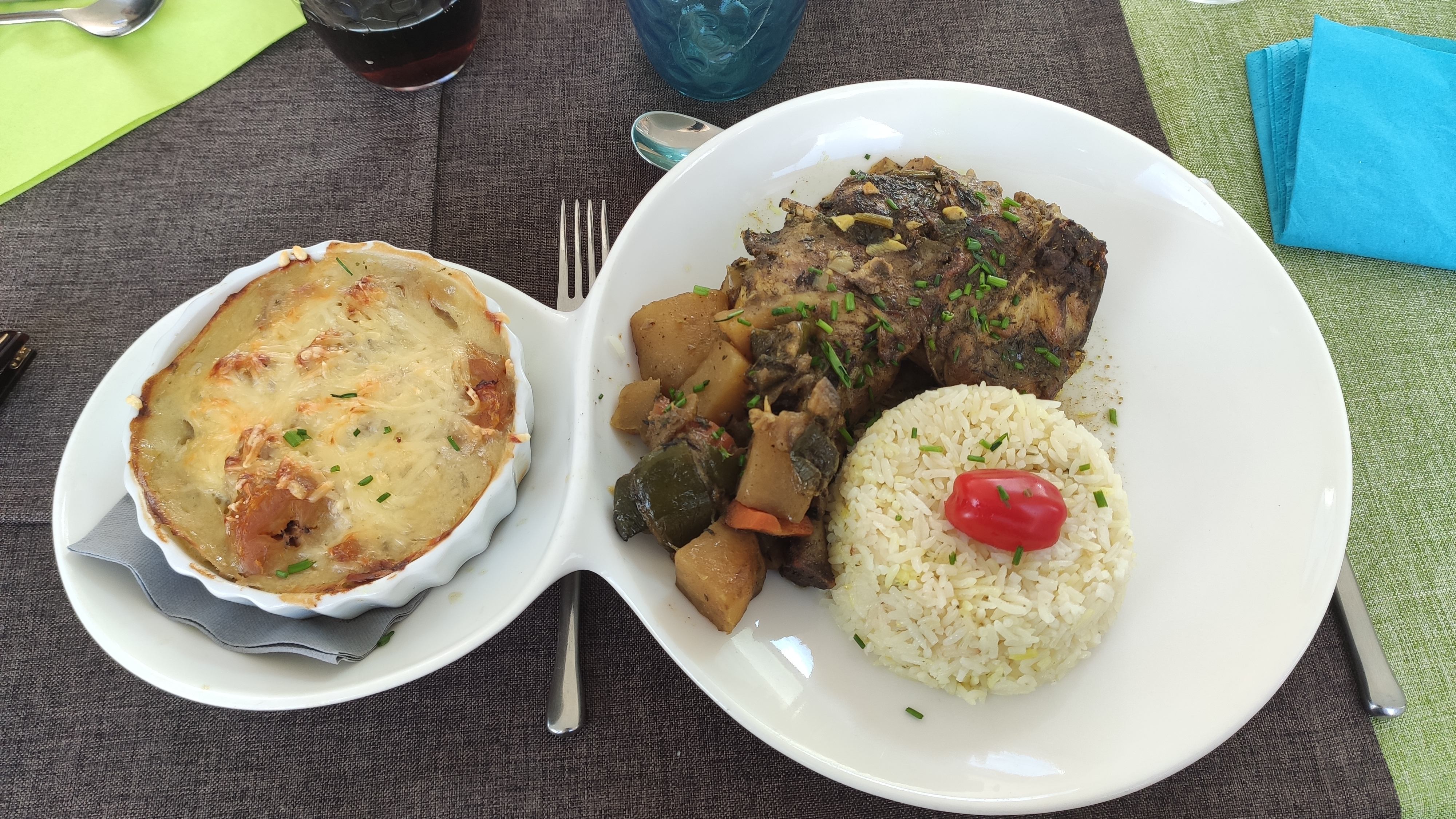 une équipe accueillante et arrangeante, prévoir tout de même une réservation ! des plats originaux et dans mon cas : après 3 repas , du colombo au poulet boucané ( top ) et enfin le jambalaya , c'est un parcours sans faute de saveurs vraiment magnifiques.
