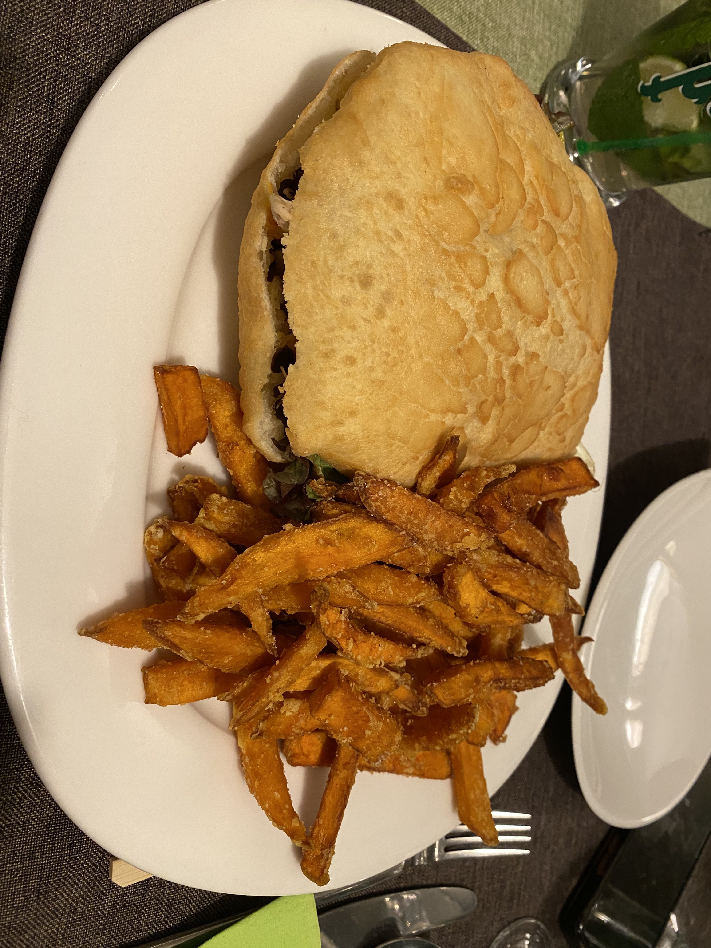 Cadre agréable mais par beau temps, il fait tellement chaud à l'intérieur (pas d'ouverture aux fenêtres) que ça gâche le plaisir. Une bouteille oubliée sur la commande mais facturée et aucune vérification des pass sanitaires. Côté plats, c'était très bon, une découverte agréable des plats antillais.