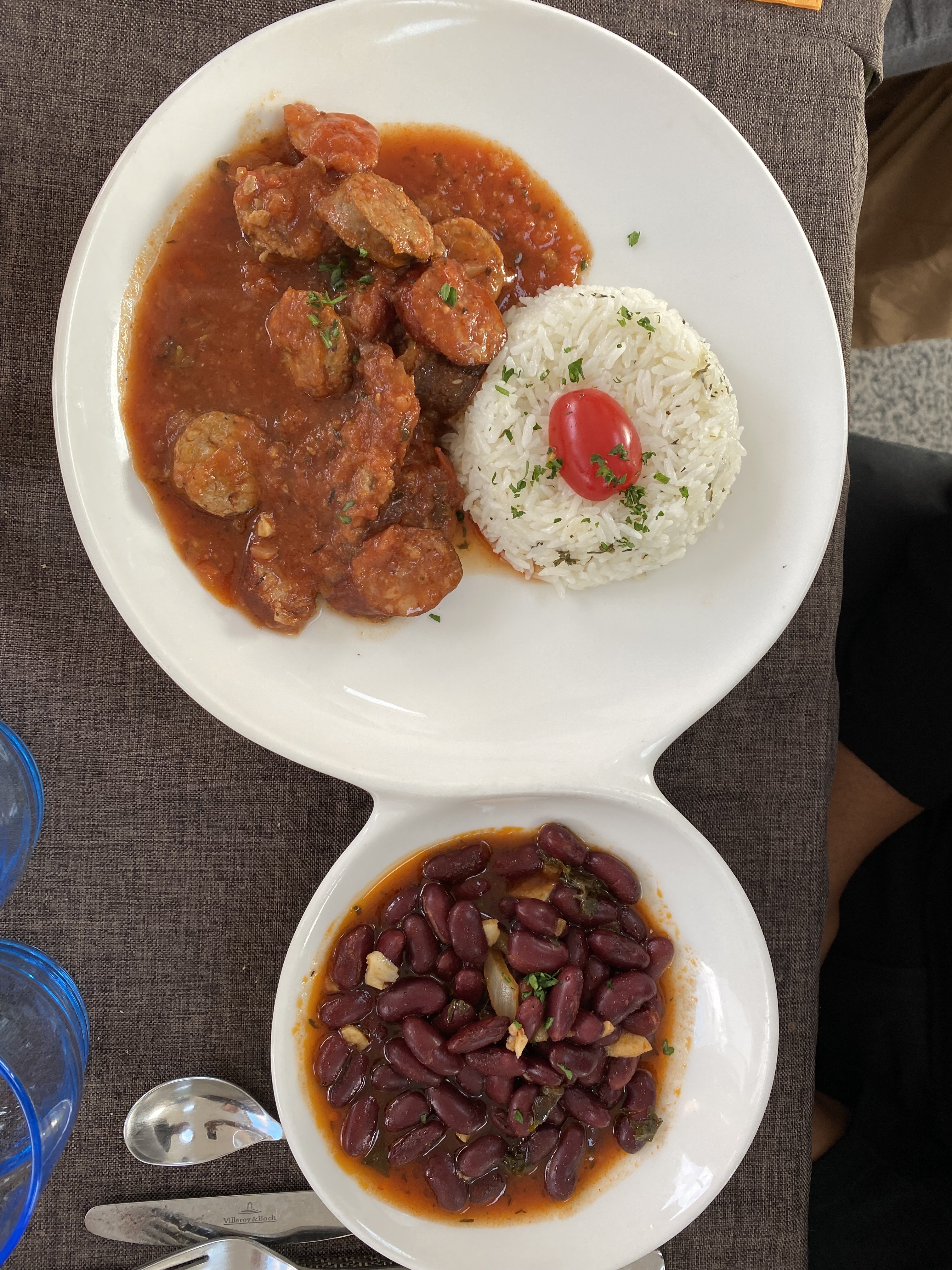 Nous avons fait un brunch (ce n'en ai pas un), quelques viennoiseries et pâte a tartiner, tout était industriel même le pain 😭😭😭 on est en France quand même !!! Ensuite le salé : que 2 choix avec des produits de qualité moindre puis un dessert une fois de plus industriel !!! Seul bon point le rhum 35€ pour si peu ça fait très mal !!