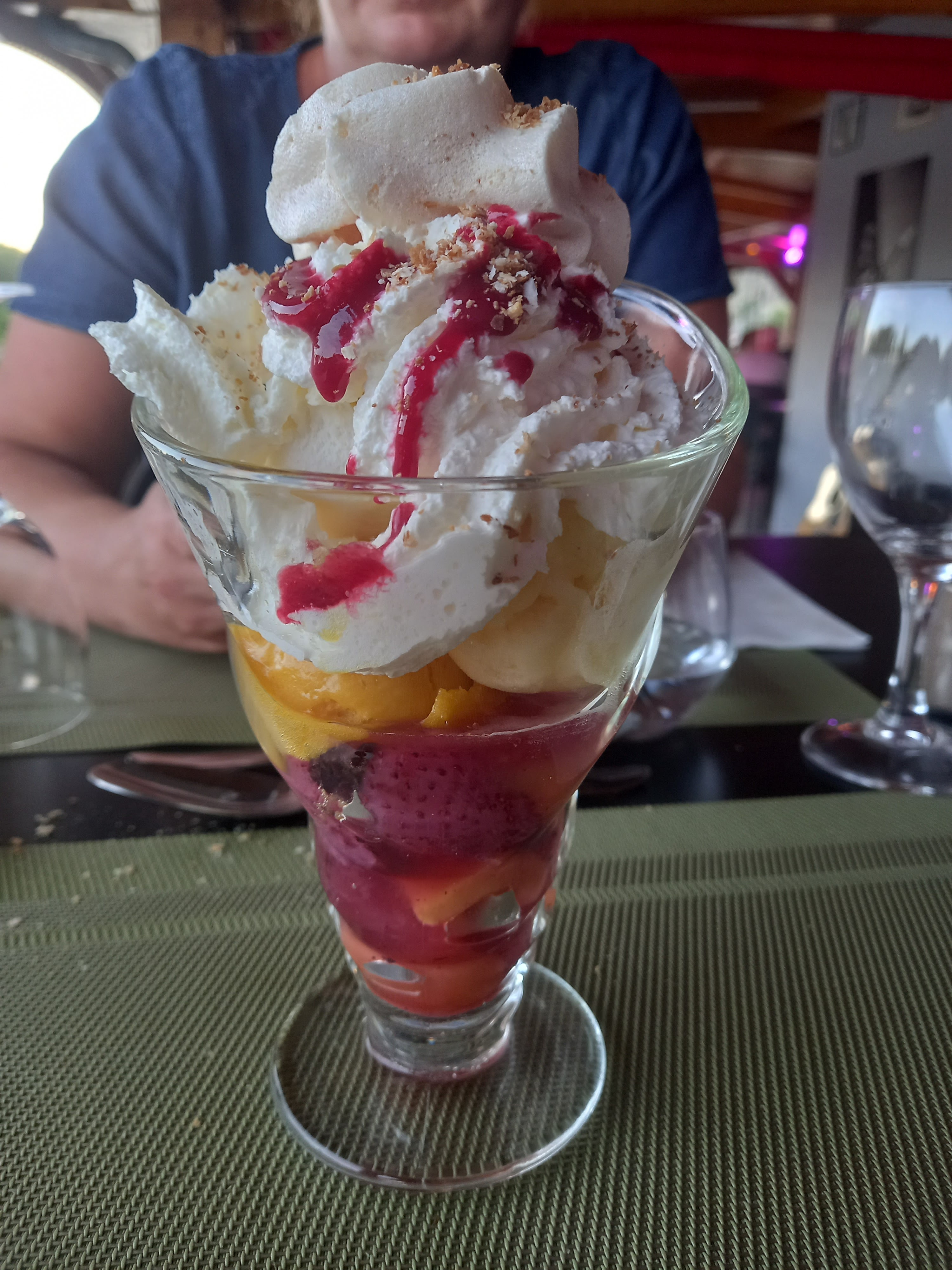 Nous y avons mangé hier soir pour fêter mes 40 ans entre amies. Trés bon menu. Les serveurs(euse)sont très agréable et disponible. Trés bonne ambiance et superbe vue.Je recommande.