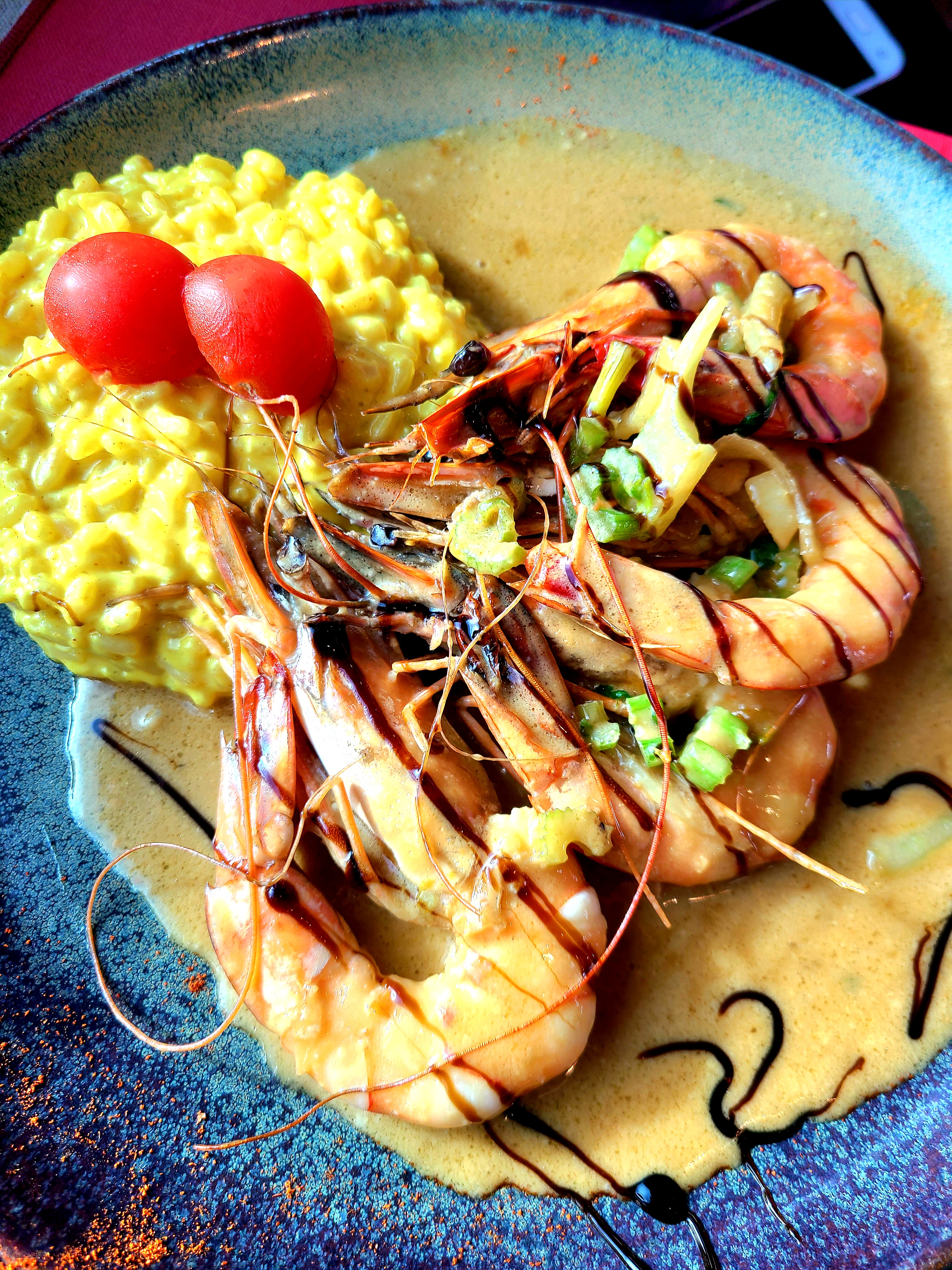Nous sommes tres deçu puisque l'emplacement est magnifique, mais la nourriture n'etait pas à notre gout. Mon mari et moi avons eu en entree un velouté de legumes tiede avec un oeuf froid. Puis jai pris les langoustines avec du riz sans gout, mon mari la piece du boucher bleue: une piece de viande blanchatre entouree de lard, nous ne savions meme pas si cetait du cochon ou du boeuf. Le seul point positif etait le serveur qui etait tres bien, et attentif.