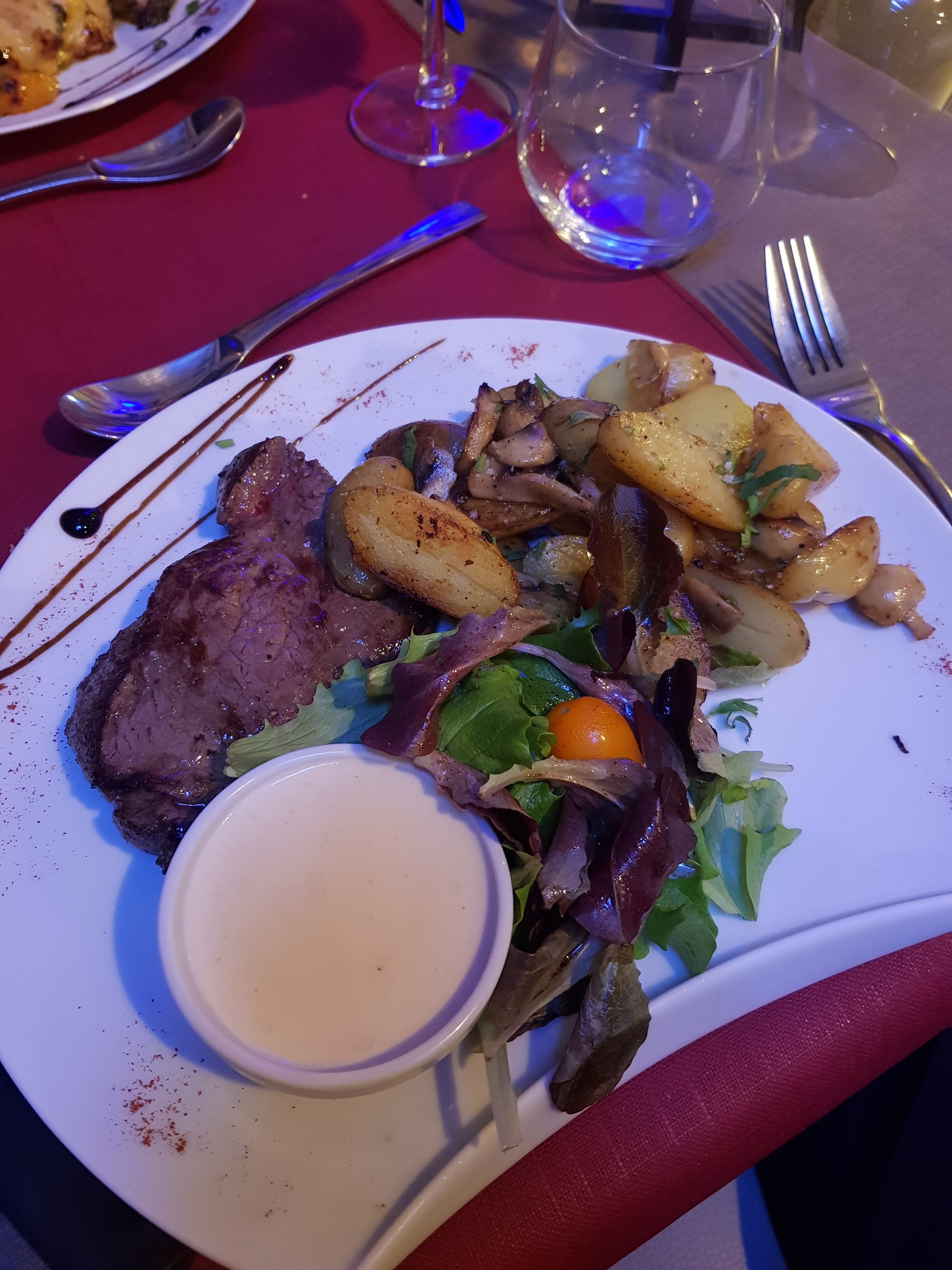 Le cadre est absolument parfait, la pièce du boucher est excellente et servis en bonne quantité et le tarif est raisonnable. Le personnel est agréable. Je recommande à 100% !