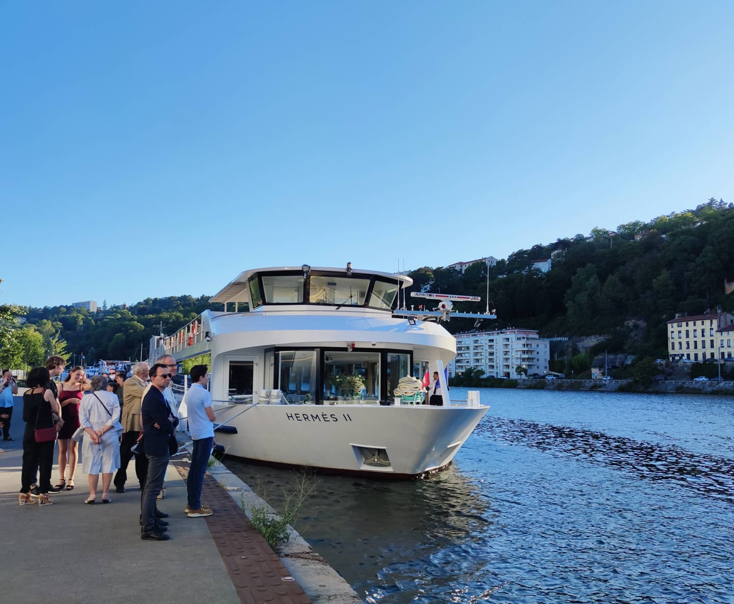 En tant que prestataire musical, nous jouons souvent sur des croisières fluviales dans des cadres événementiels ou touristiques. L'Hermès 2 est pour l'instant le bateau que j'ai préféré ! Chic et sobre, silencieux (c'est rare !), il offre plein de belles perspectives sur la ville et ses alentours. Si en plus la navigation vous fait remonter la Saône à travers le centre de Lyon jusqu'à l'ile Barbe, c'est le top !