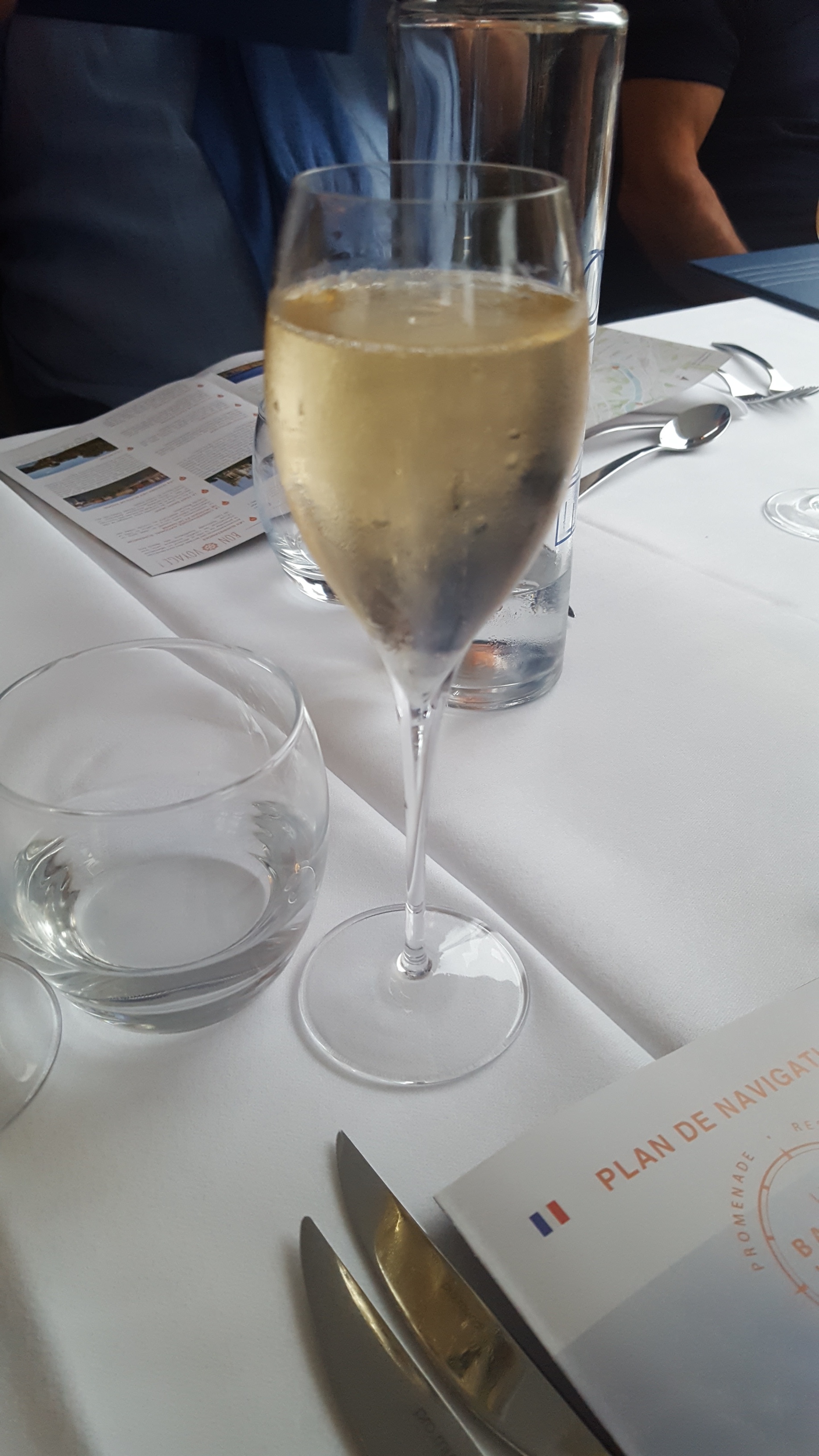 Personnel vraiment très aimable. Repas exceptionnel. Prix accessible de la coupe de champagne. Erreur de destination (GPS). La compagnie nous as contacté 10 minutes avant le départ et grâce a cette appel + indications nous avons pu faire l'embarquement malgré le petit retard. Un grand merci à l'équipe.