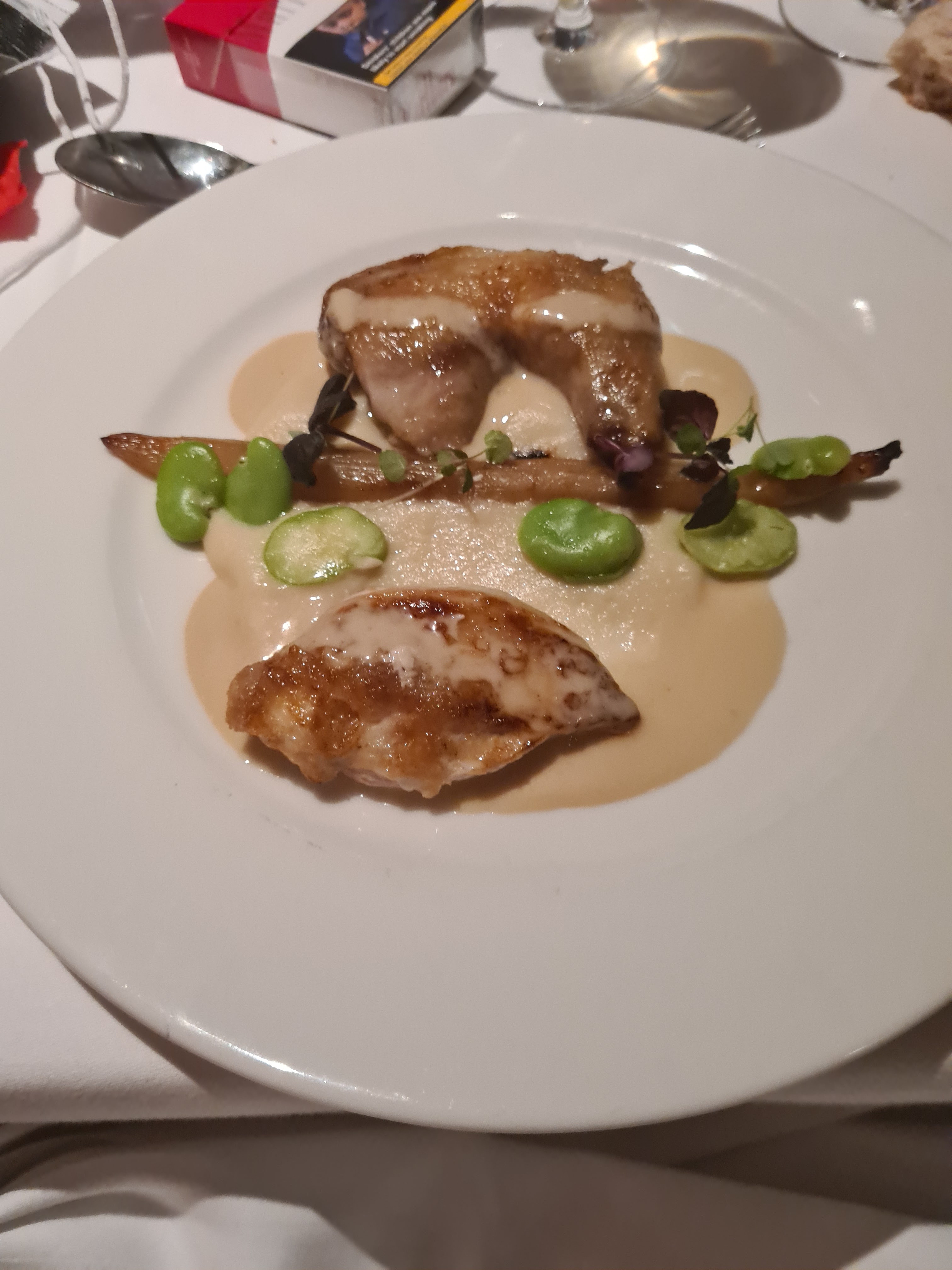 Repas très fin, la cuisine est Correct, mais la quantité est Insuffisante par apport au prix ....Les desserts sont simples !!!.