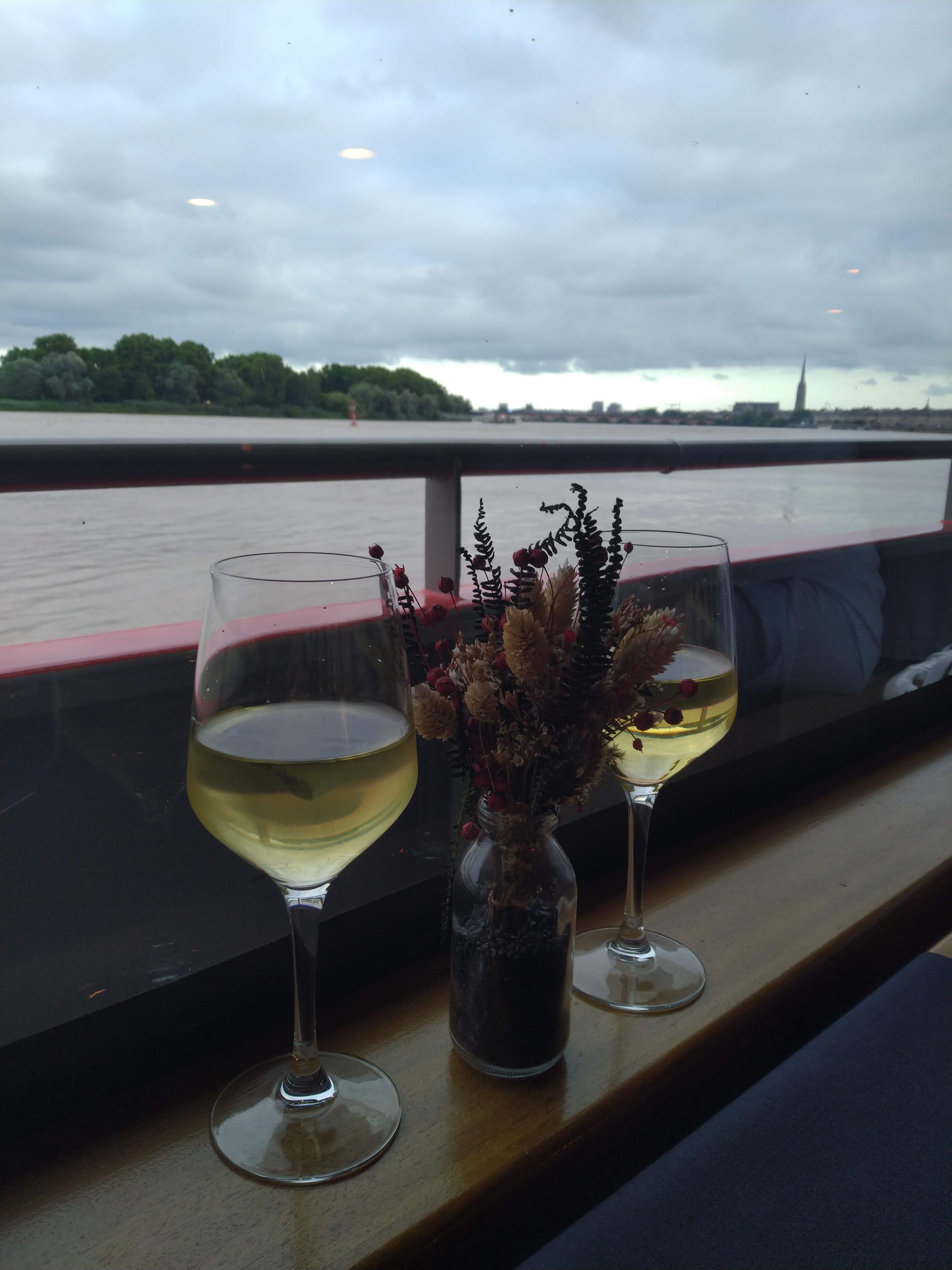 Un cadre exceptionnel en voguant le long de la Garonne. Personnel très sympathique, mises en bouche et entrée succulentes. Petit bémol sur la souris d'agneau et la gaufre de pommes de terre qui ont été un plat sec. Pour le coup, petit regret de n'avoir pas opté pour le poisson. Dessert bon avec un vrai plus sur la mousse au cacao du trio chocolat caramel cacahuète. Un très bon moment passé entre collègues.