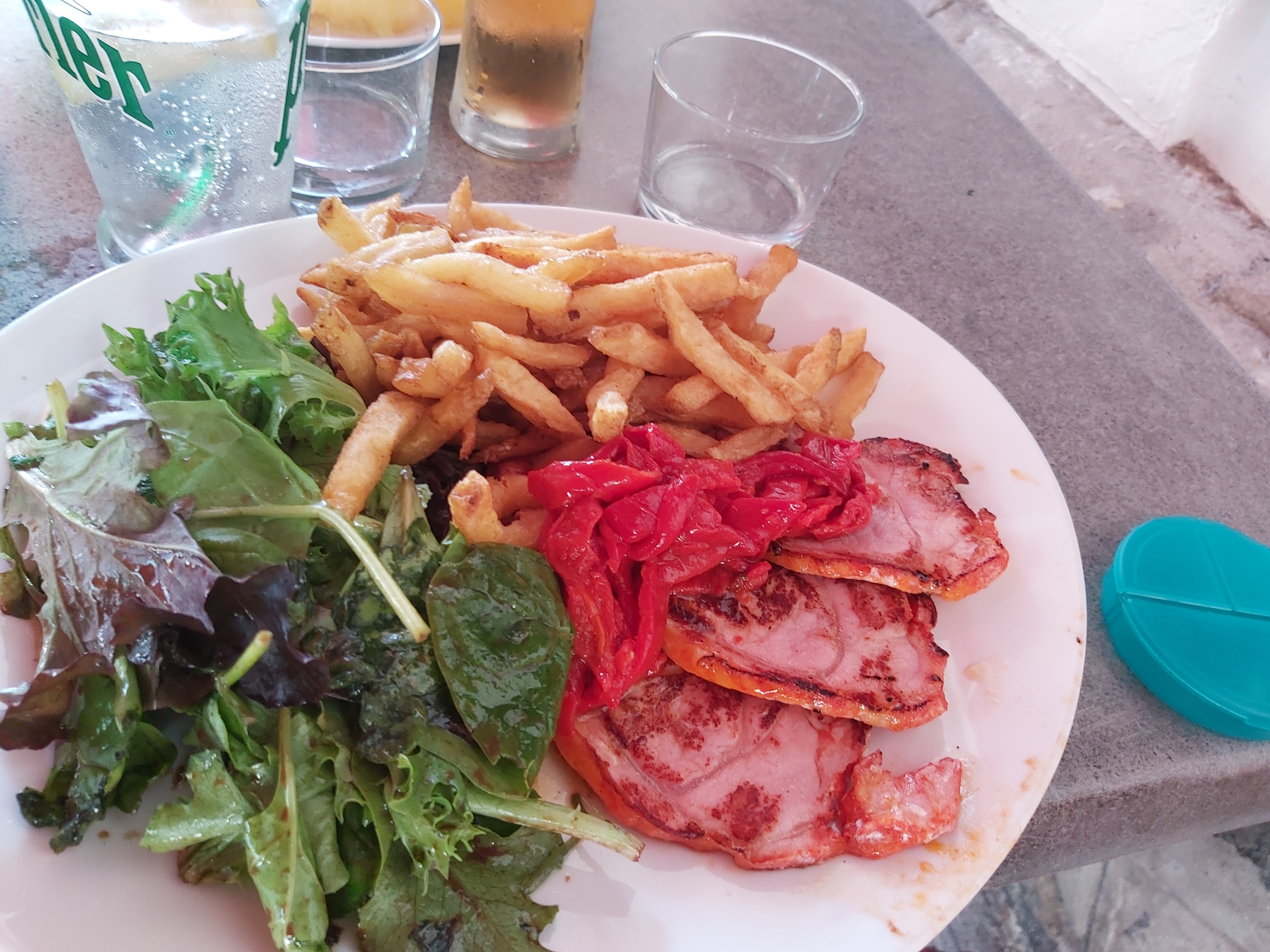 Ça dépanne sur St Jean de Luz où tout est très cher. Repas maison mais sans plus, frites, viande..dessert pas maison. Tables pas très clean, nous avons mangé à l'intérieur et il faisait froid chauffage insuffisant. Accueil poli