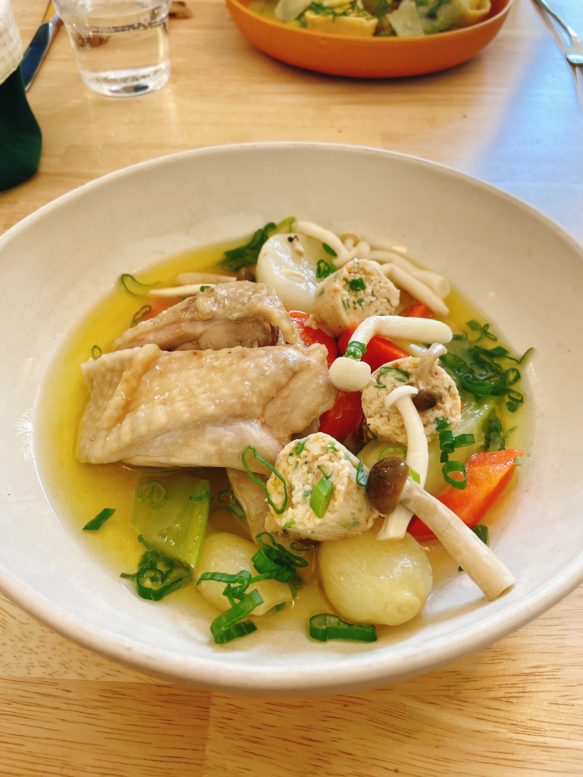 Près de place Viarme, ce restaurant / épicerie est un vrai perle ! On est allé un midi, le carde est agréable, design épuré. Pour le menu du midi, la Cheff propose peu de choix, mais le menu change toutes les semaines ! Et pour les gens qui ont du mal faire le choix, c’est très simple 👍 Pour ma part, j’ai commandé volaille au pot, grande de surprise, le jus est très très savoureux contrairement son apparence claire comme de l’eau. La viande est tendre, juicy, moutard au curcuma est une merveille à tomber par terre ! Le dessert chou chocolat /orange, façon Paris-Brest avec une couche légère de orange confis, le mélange de crème chocolat et l’orange confis est juste dosé. Le déjeuner a été parfait pour nous, le rapport qualité /prix est au rdv ! La Cheff a sans doute passé des années de service dans des restaurants étoilés !!! Bravo ! Je vous recommande sincèrement !