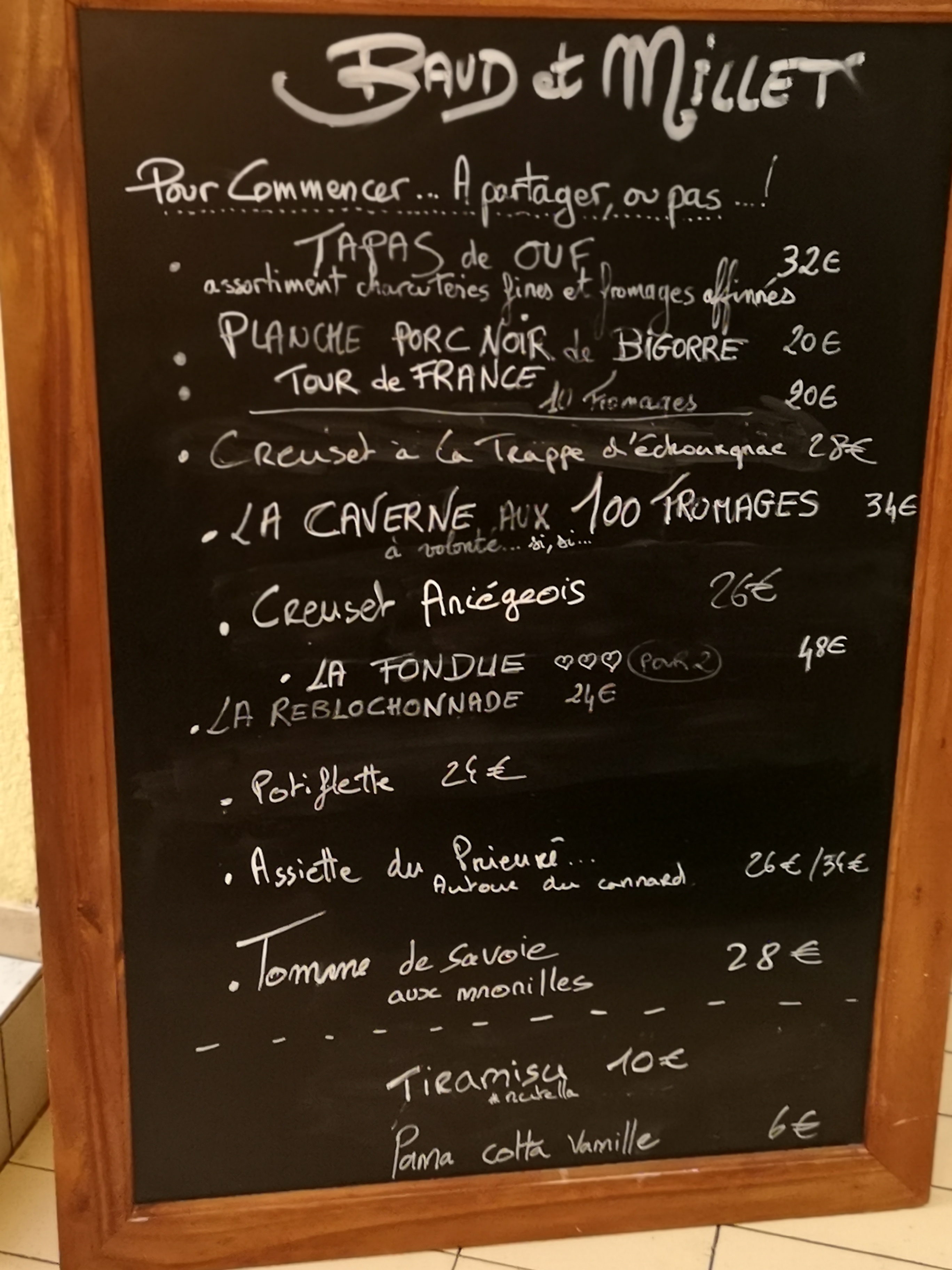 Un restaurant tout ce qu'il y a de plus charmant. En groupe avec mes élèves pour une soirée fromage et un accès à volonté à la cave aux fromages, incroyable, 110 fromages à volonté. Certains dentre nous vont mettre quelques jours à s'en remettre ... c'est la deuxième fois que nous dînons chez Baud et Millet et chaque visite est une superbe expérience. Je conseille vivement !