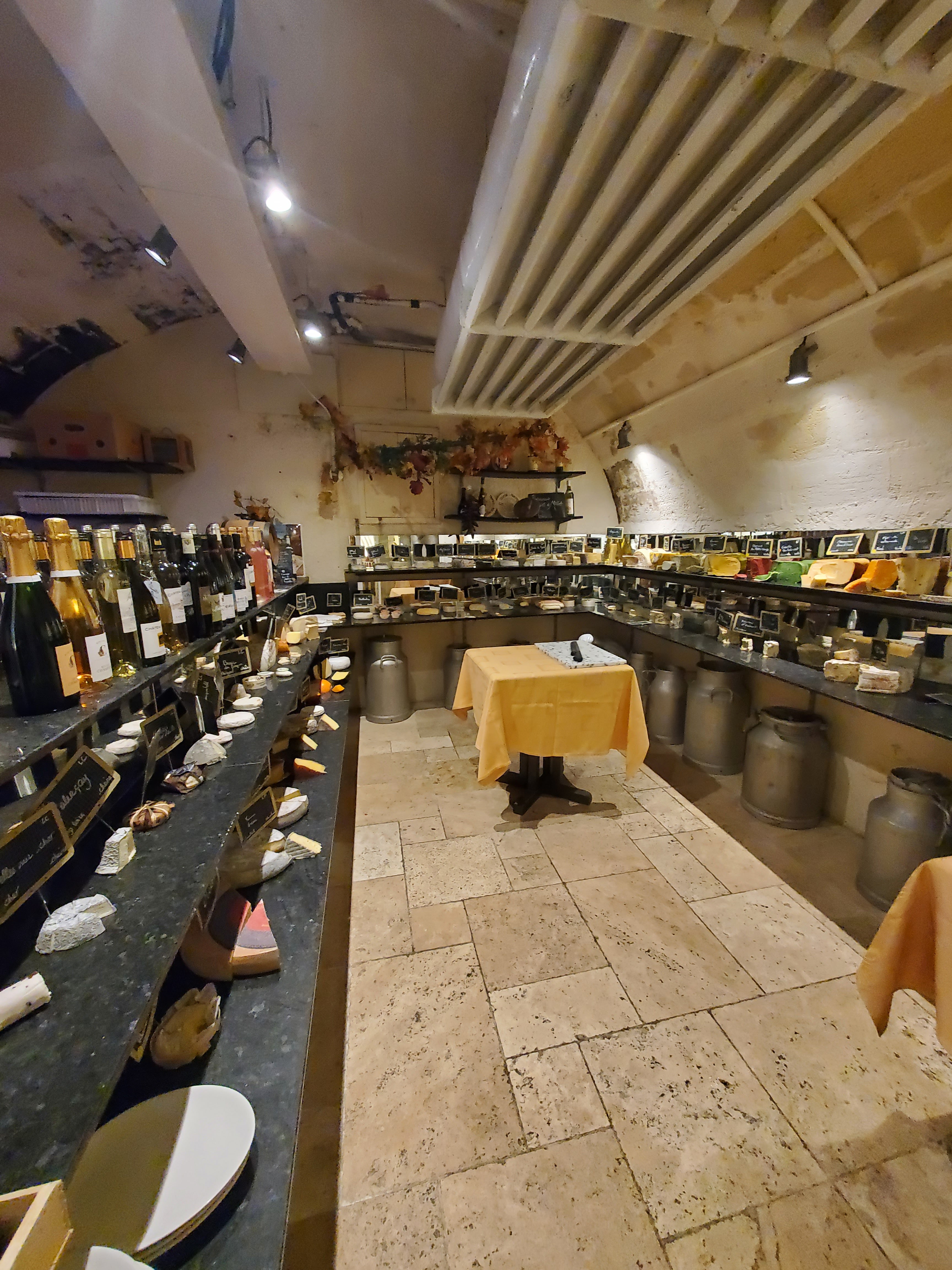 Pour ceux qui aime les fromages, c'est un bout de paradis ! Une cave bien fournie en fromage mais aussi en vin ! De tous les coins de France ! Les serveurs sont sympathique et ils conseillent sur les vins en fonction du plat (à base de fromage, bien évidemment....). La salle du bas, à côté de la cave à fromage, est une cave voûtée donc l'ambiance y est originale. À faire entre amis ! Seul bémol, les tarifs des plats ne nous ont pas été annoncé et vu qu'on avait pas de cartes...