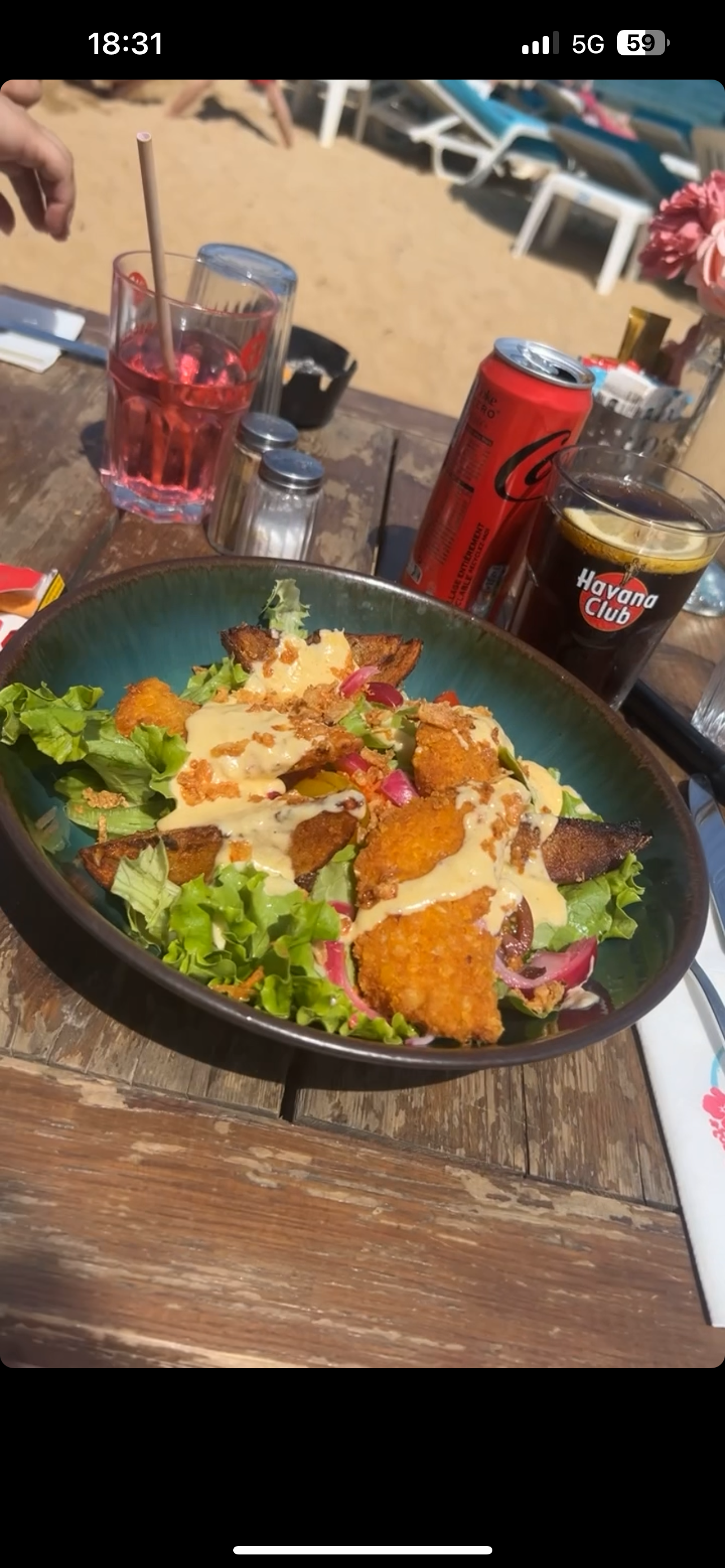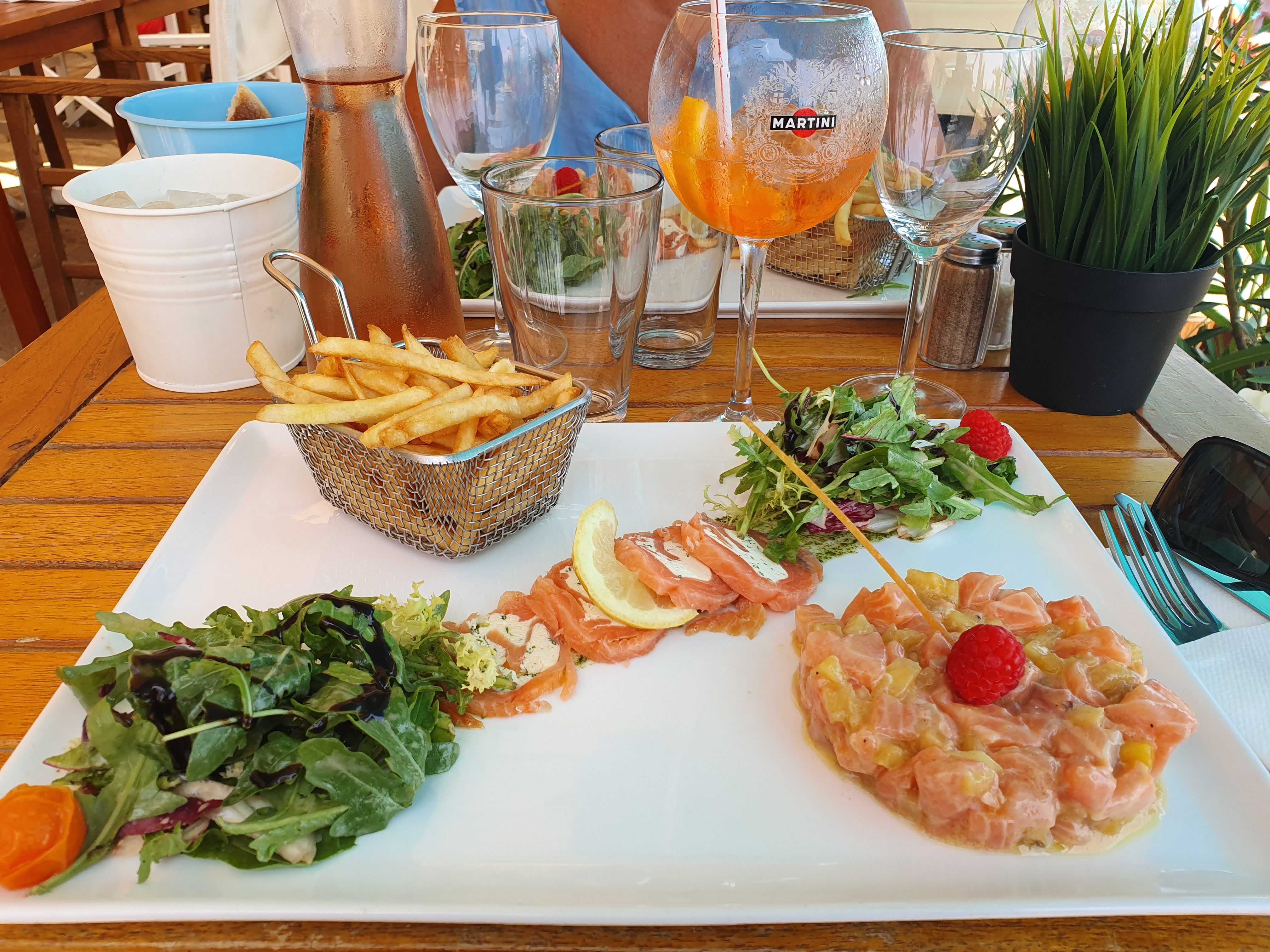 Super petit resto plage spritz tartare de saumon plage privée super bien à recommandé