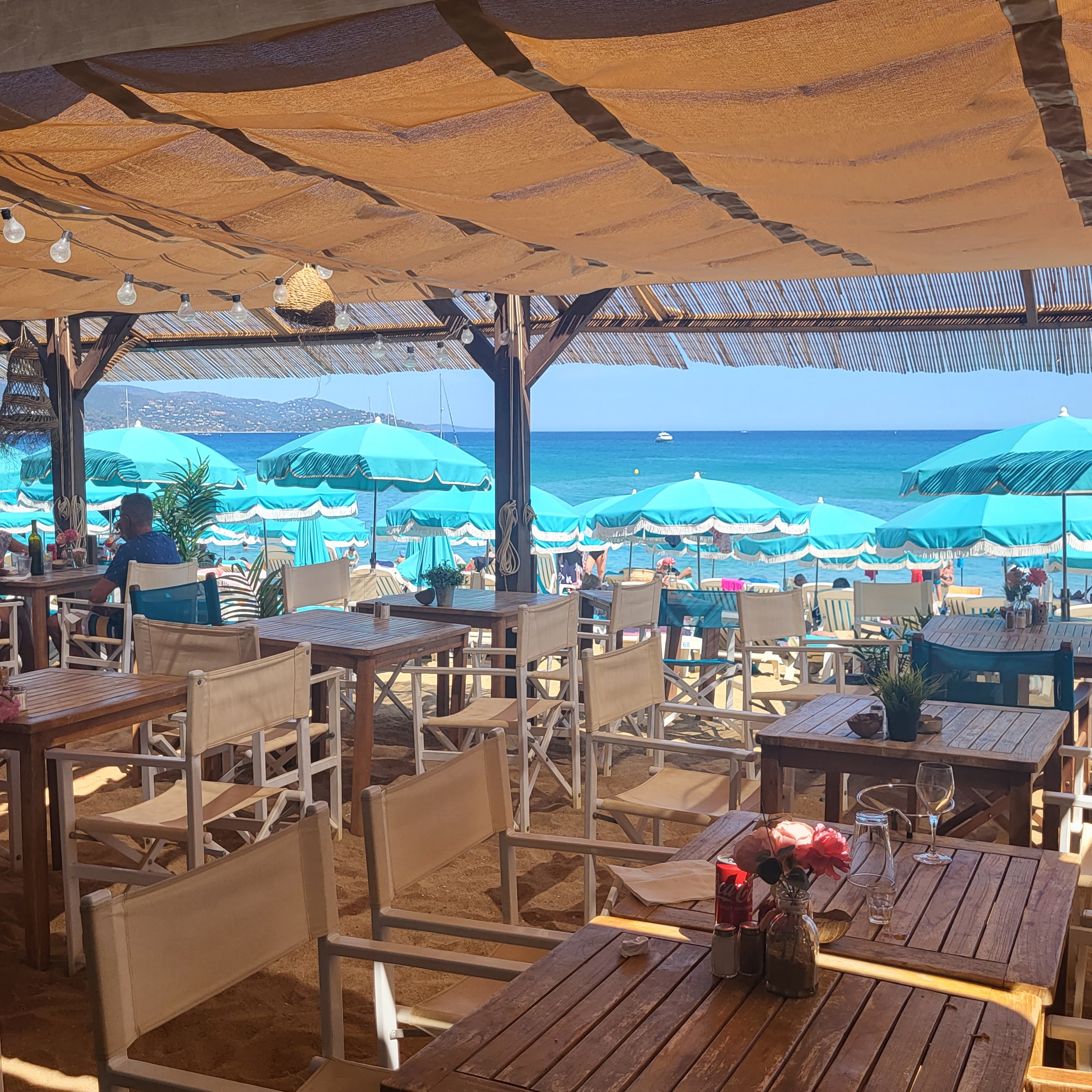 Seul restaurant de plage nous ayant accepté sans réservation. Lors du premier service du midi, nous n'avons pas été déçus. La note a été plus que correcte pour un repas à trois avec apéritifs. C'était bon, le service était rapide et le décor est évidement très chouette.